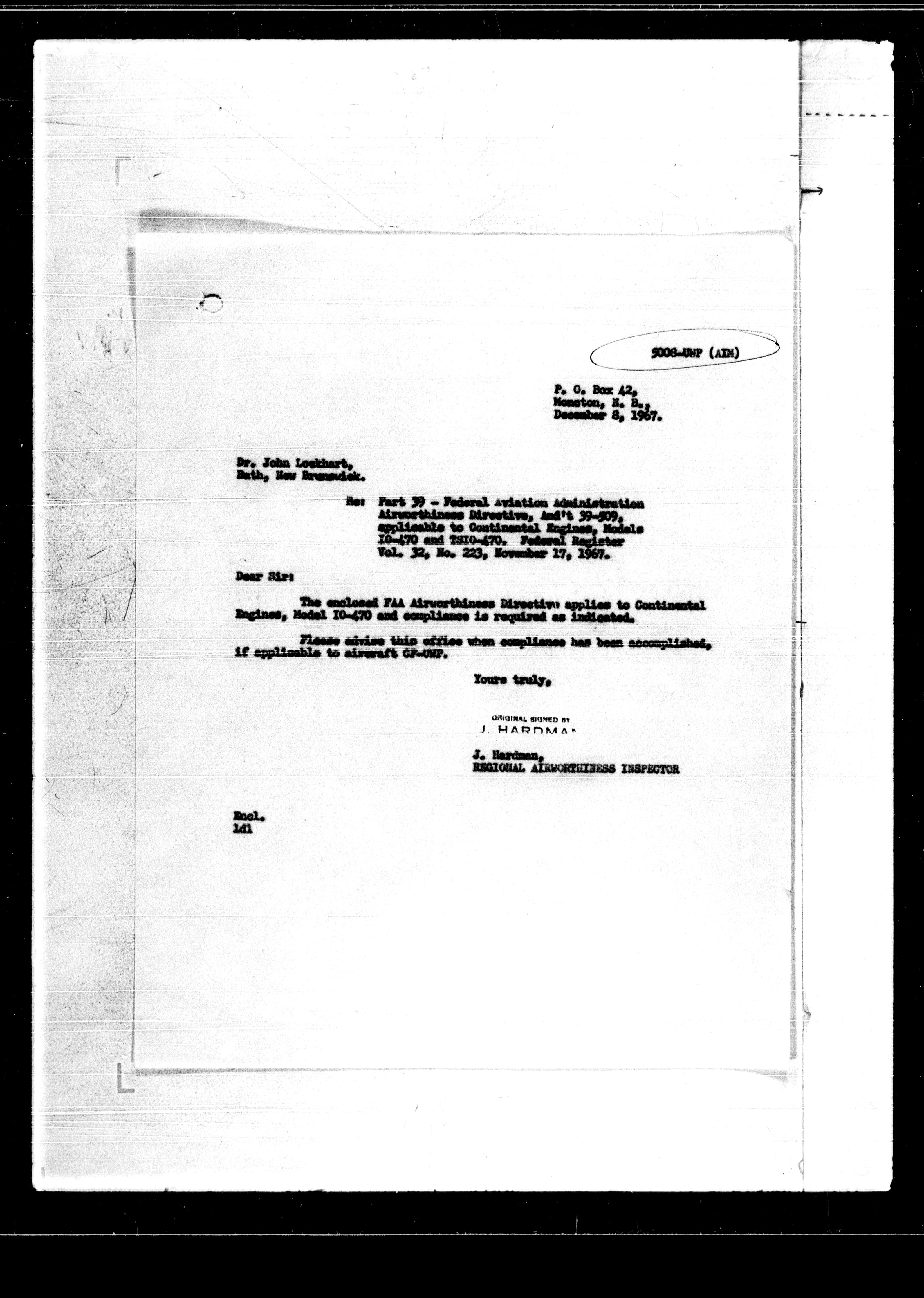 Department of Transport : Civil aircraft registration, inspection and operation files, block 5008, 1920-1986 - 7664