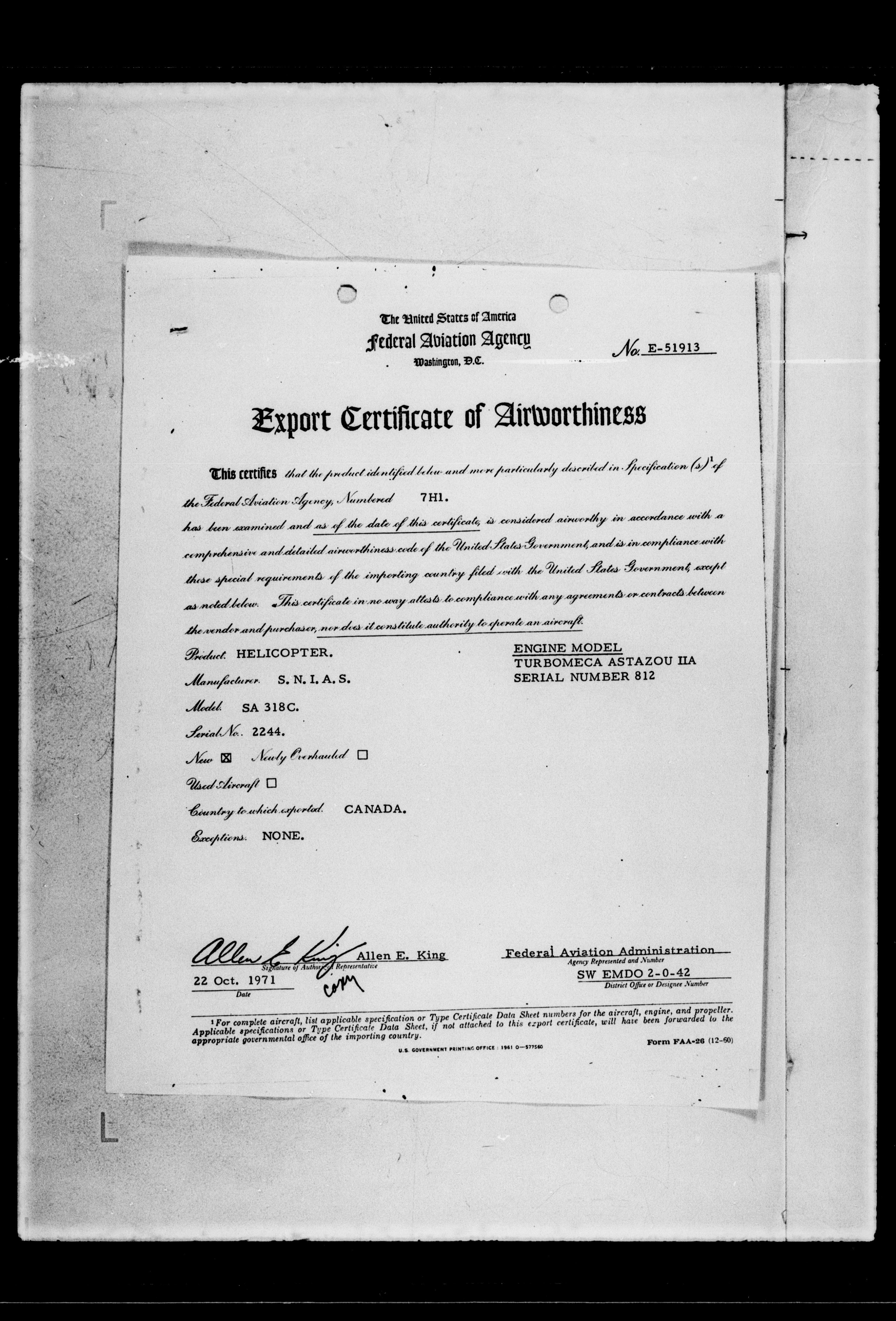 Department of Transport : Civil aircraft registration, inspection and operation files, block 5008, 1920-1986 - 7667