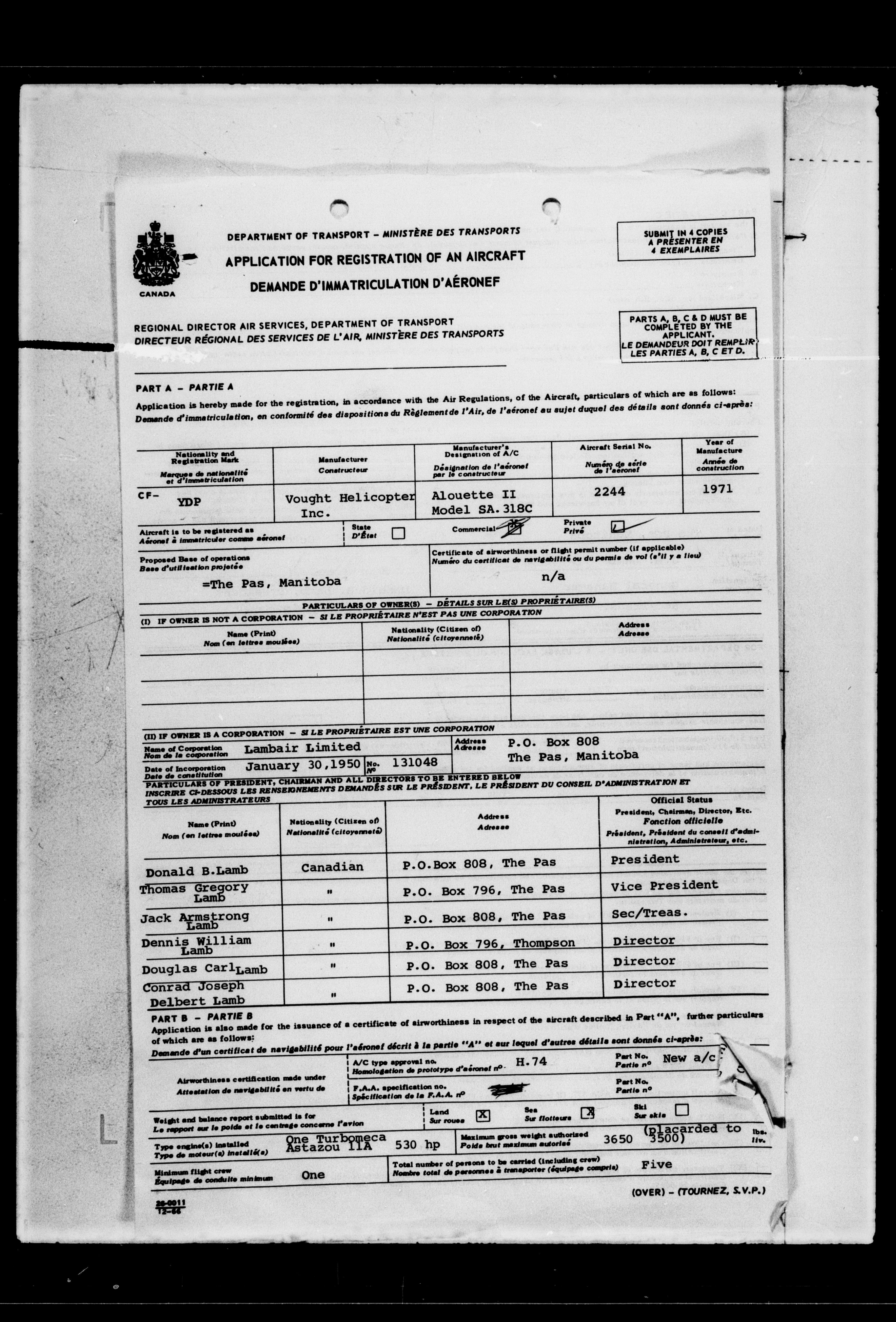 Department of Transport : Civil aircraft registration, inspection and operation files, block 5008, 1920-1986 - 7667
