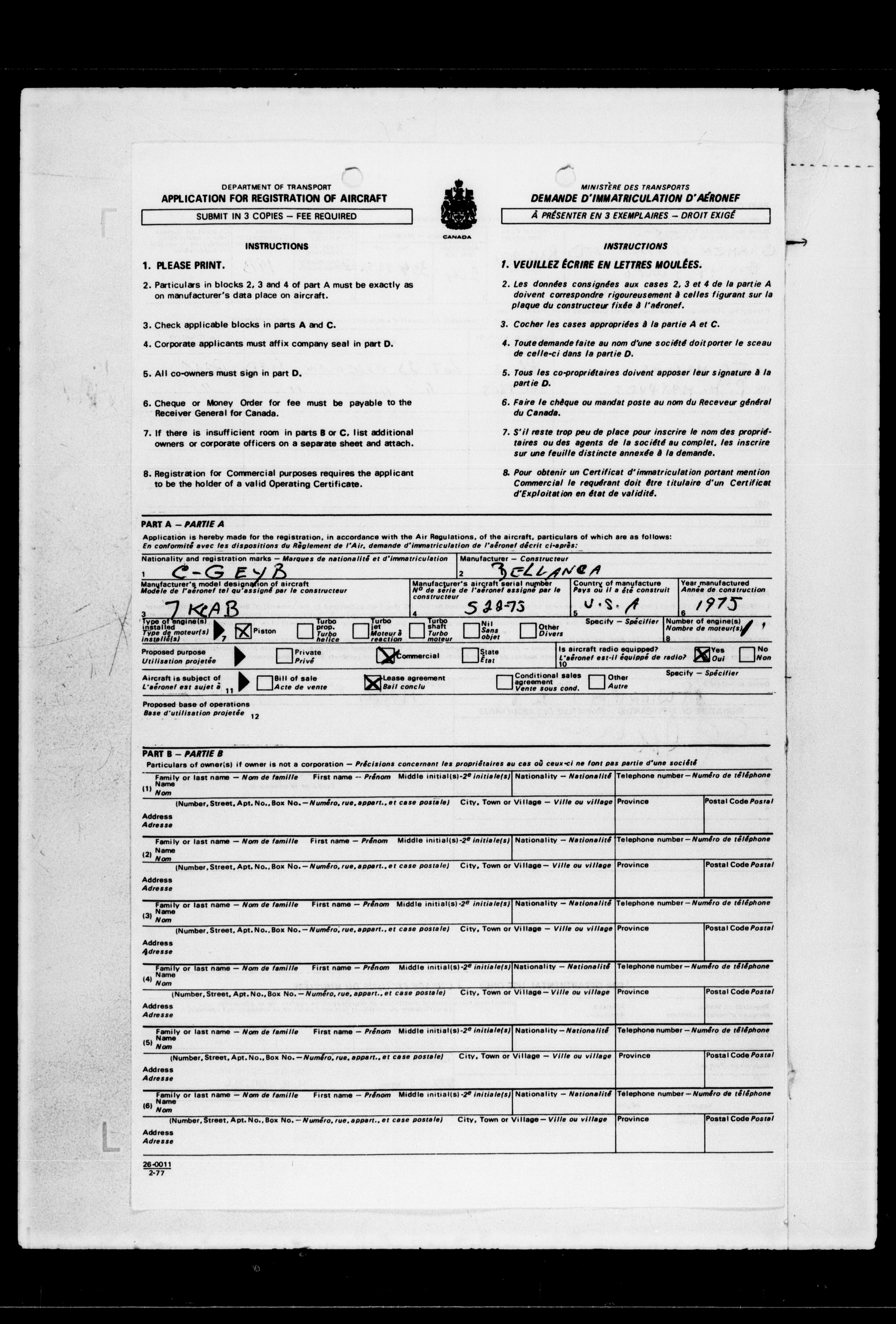 Department of Transport : Civil aircraft registration, inspection and operation files, 1920-1986 : T-7669