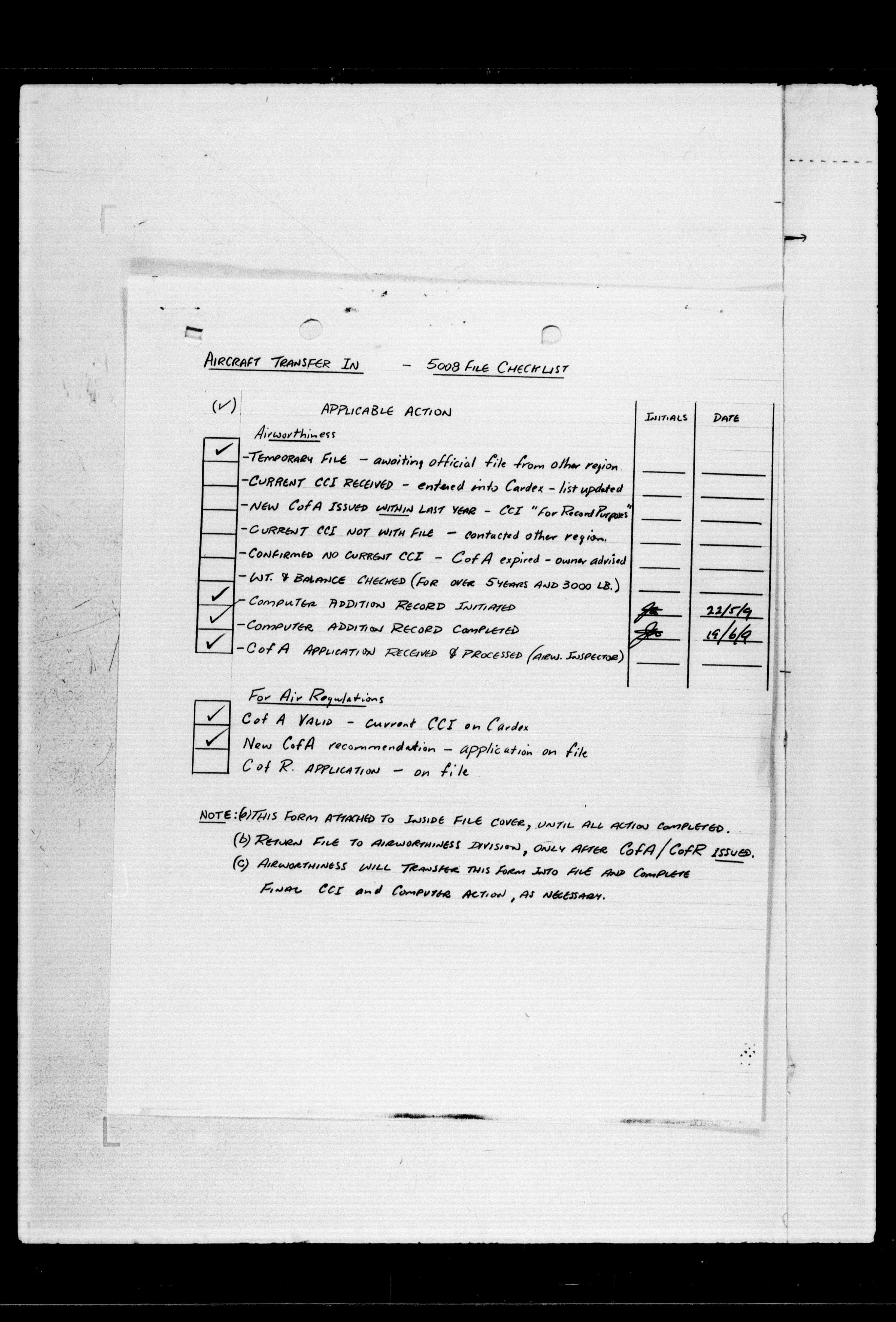 Department of Transport : Civil aircraft registration, inspection and operation files, block 5008, 1920-1986 - 7669