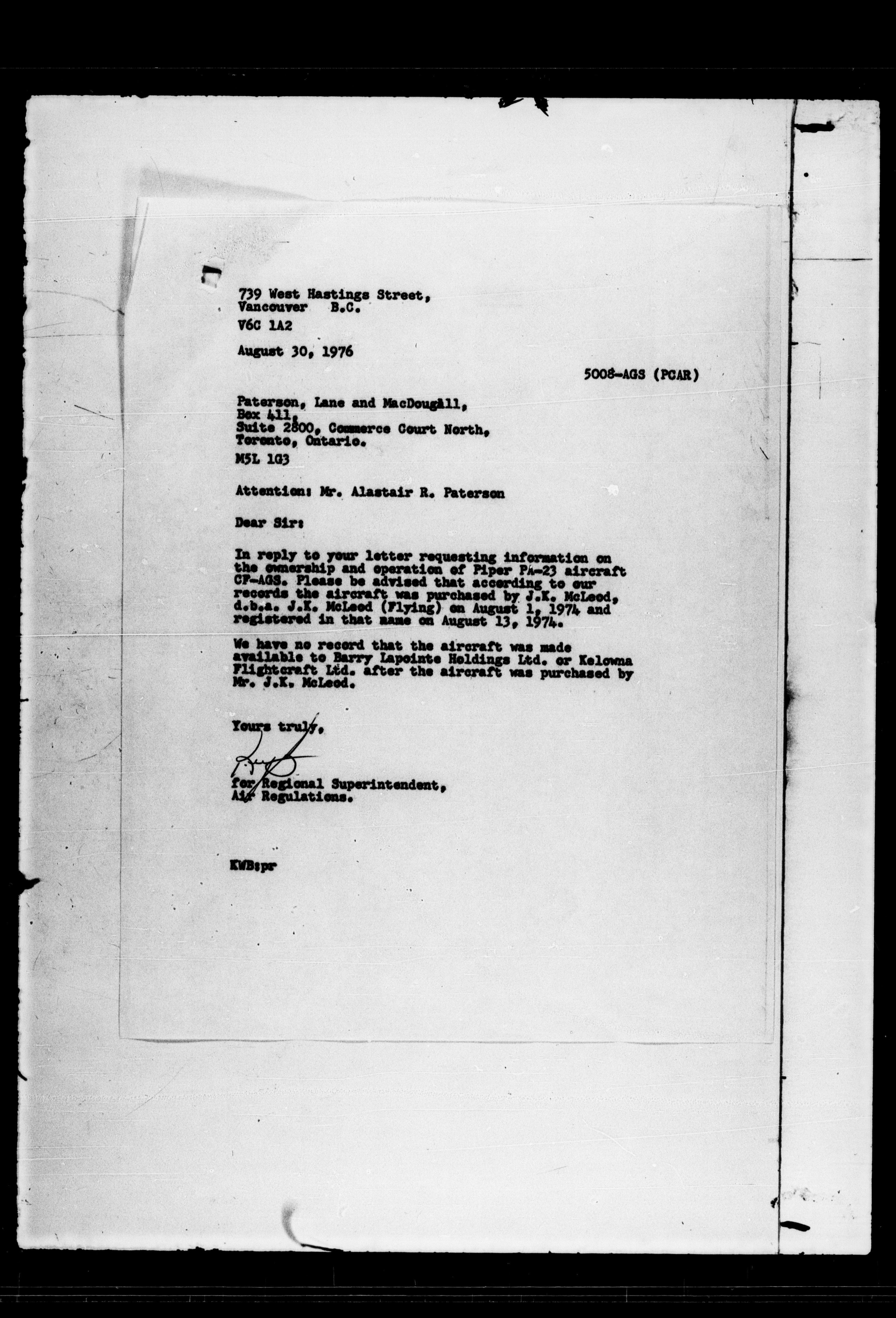 Department of Transport : Civil aircraft registration, inspection and operation files, block 5008, 1920-1986 - 7672