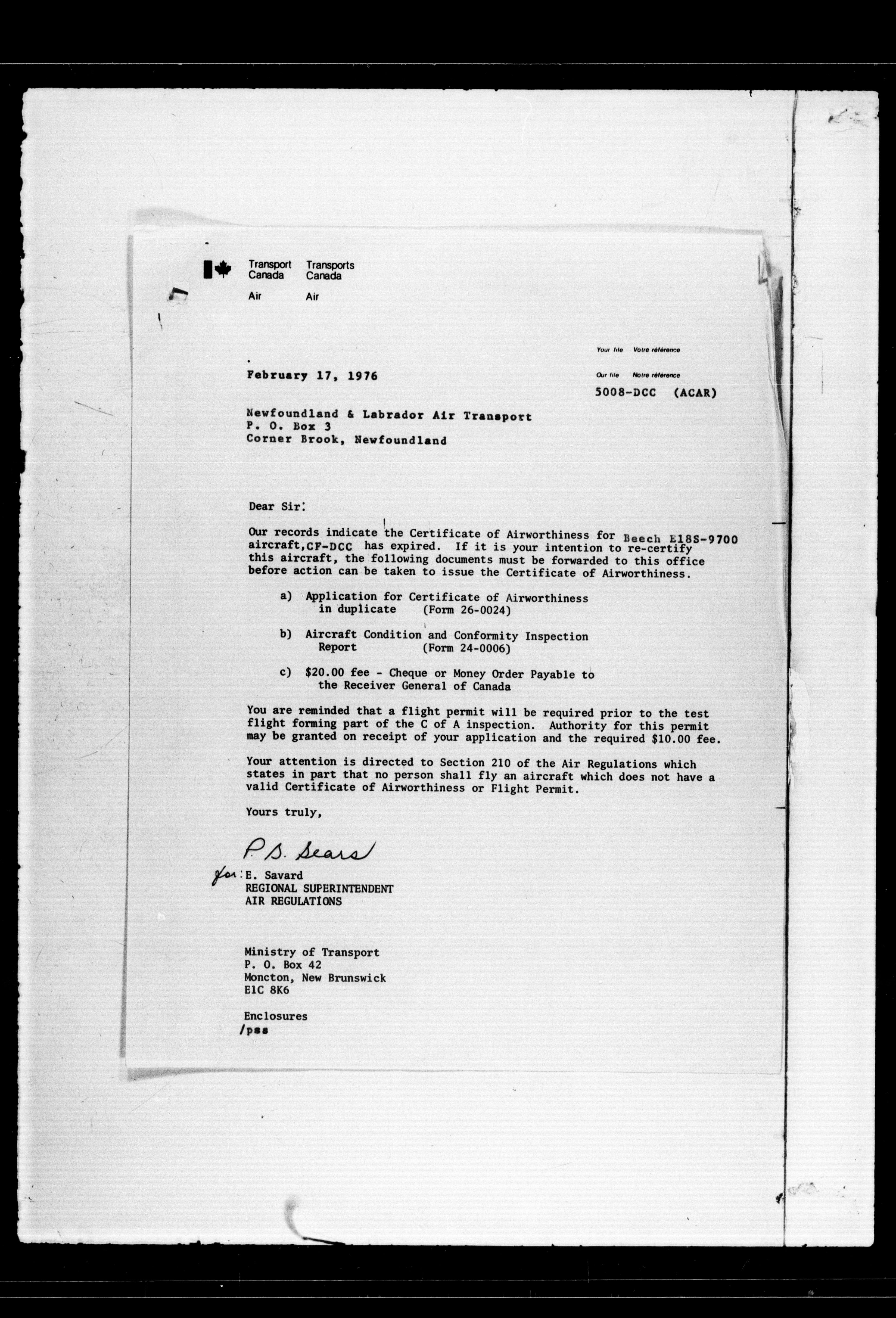 Department of Transport : Civil aircraft registration, inspection and operation files, block 5008, 1920-1986 - 7673