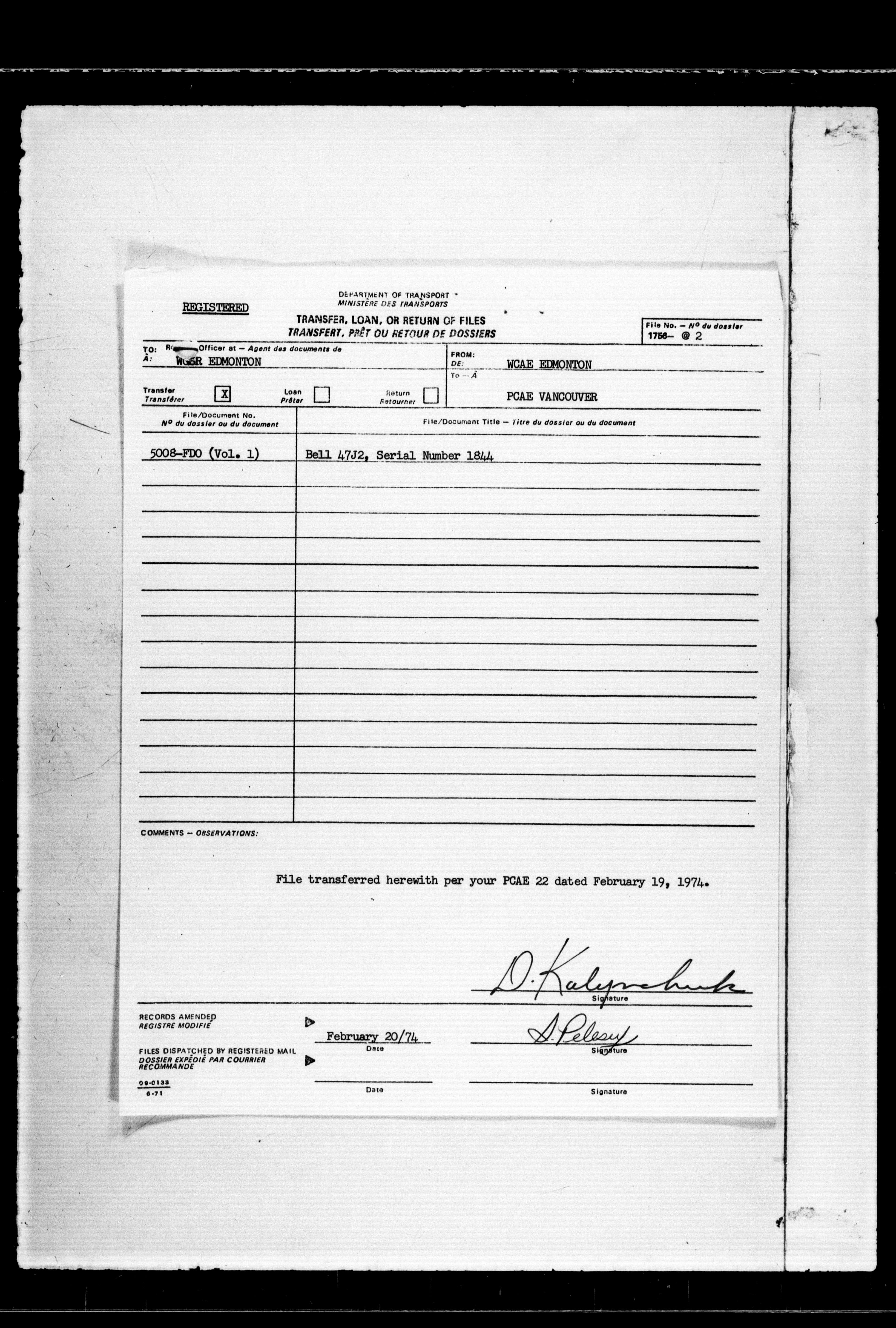 Department of Transport : Civil aircraft registration, inspection and operation files, block 5008, 1920-1986 - 7675
