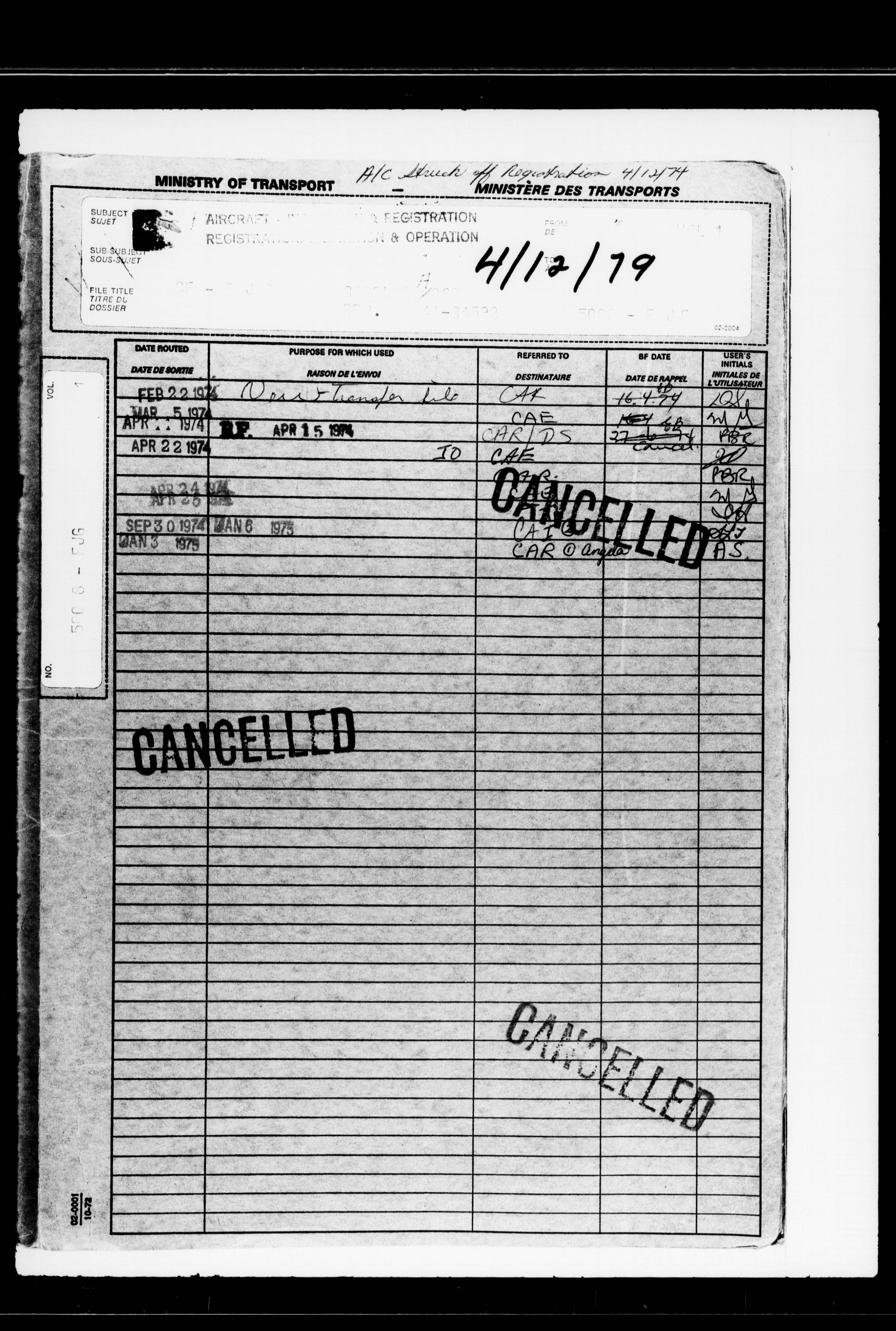 Department of Transport : Civil aircraft registration, inspection and operation files, block 5008, 1920-1986 - 7675