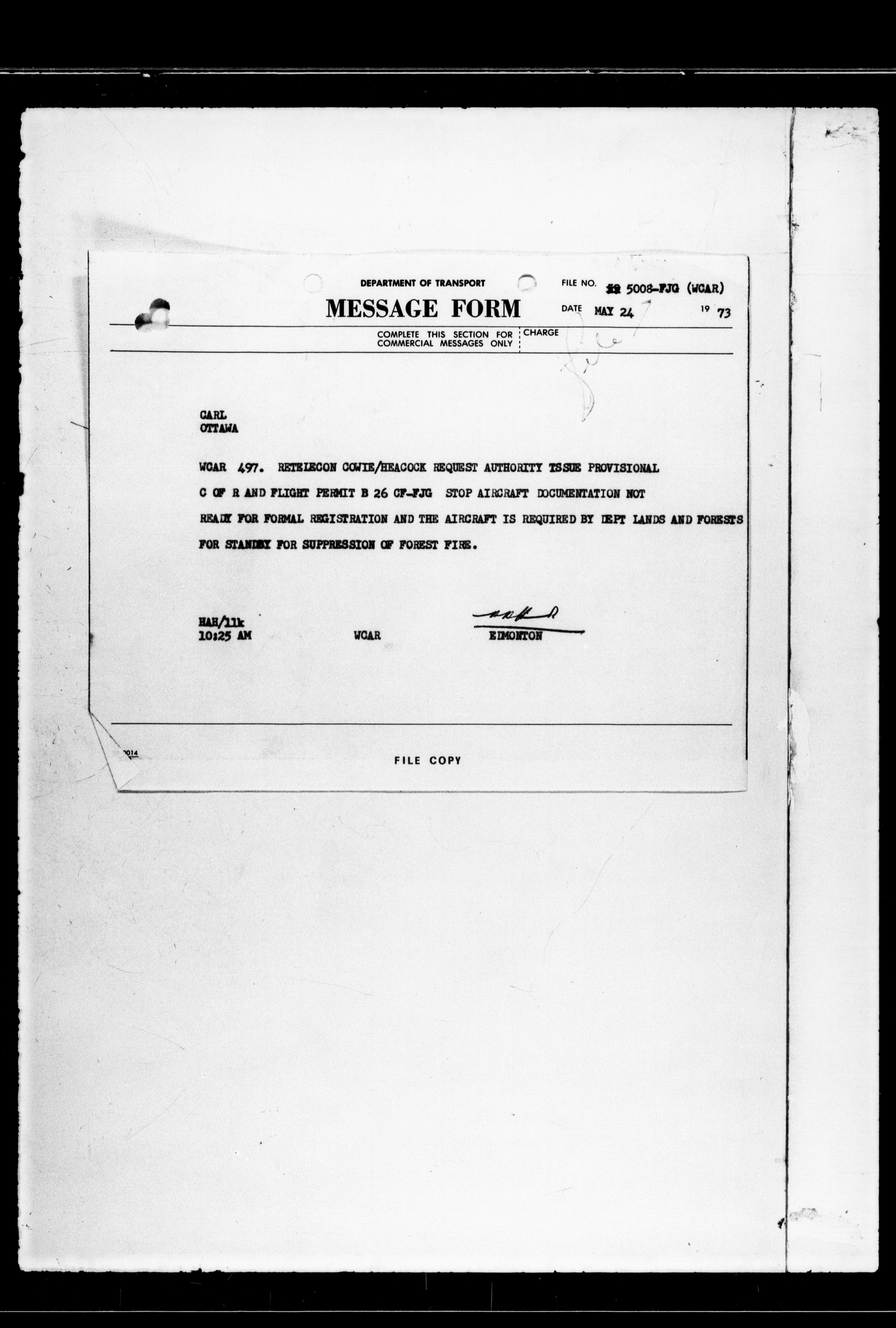 Department of Transport : Civil aircraft registration, inspection and operation files, block 5008, 1920-1986 - 7675