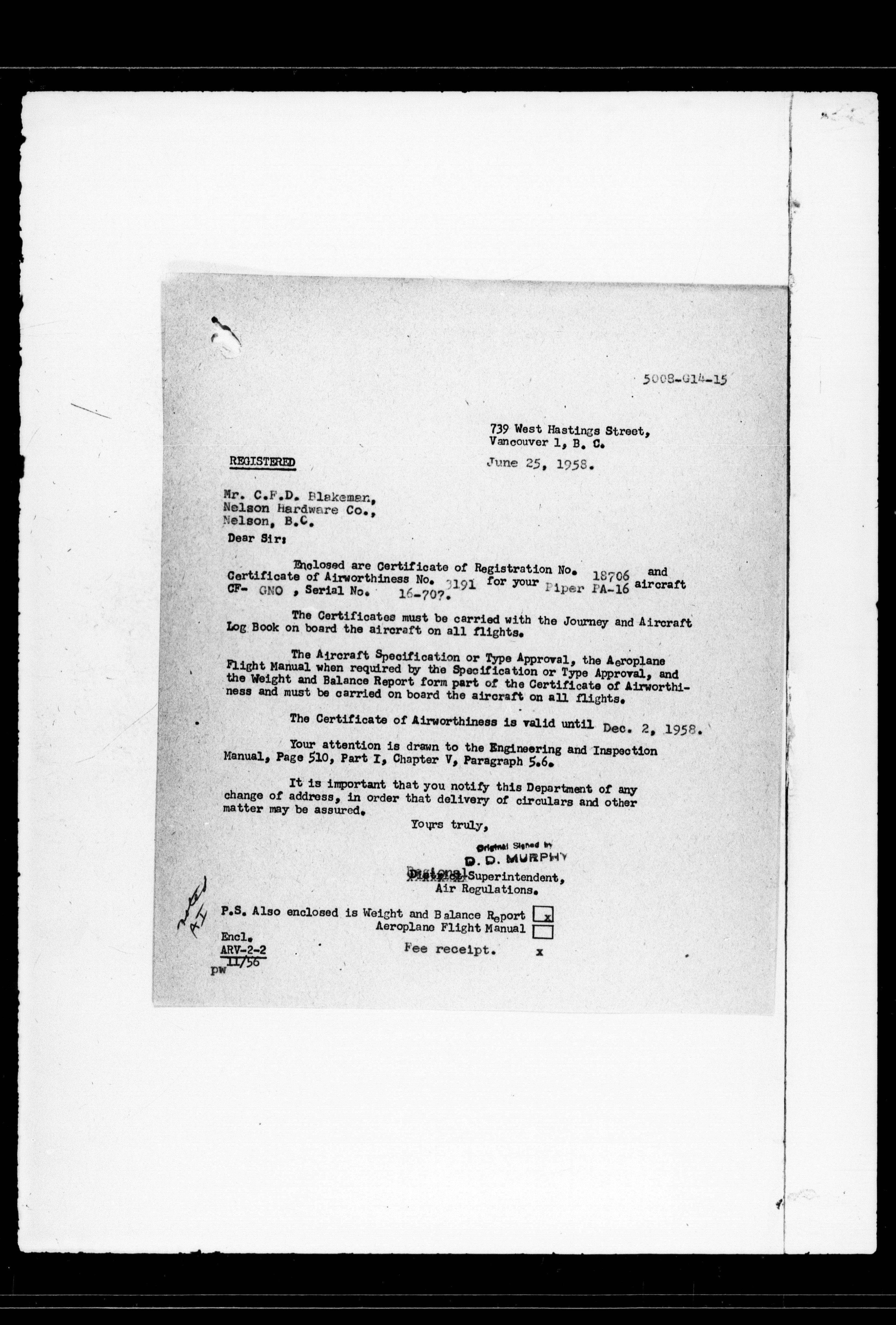 Department of Transport : Civil aircraft registration, inspection and operation files, block 5008, 1920-1986 - 7675
