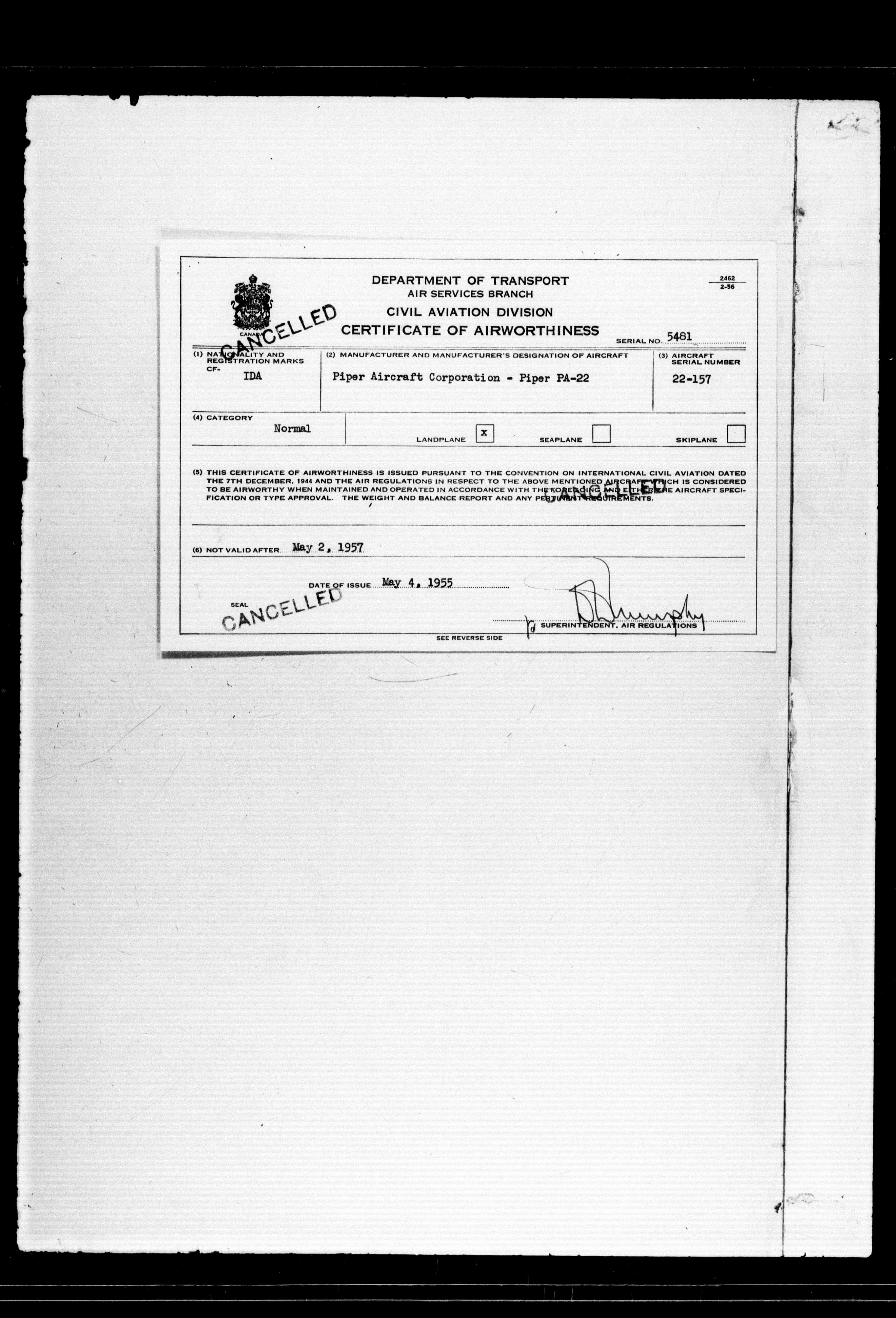 Department of Transport : Civil aircraft registration, inspection and operation files, block 5008, 1920-1986 - 7677