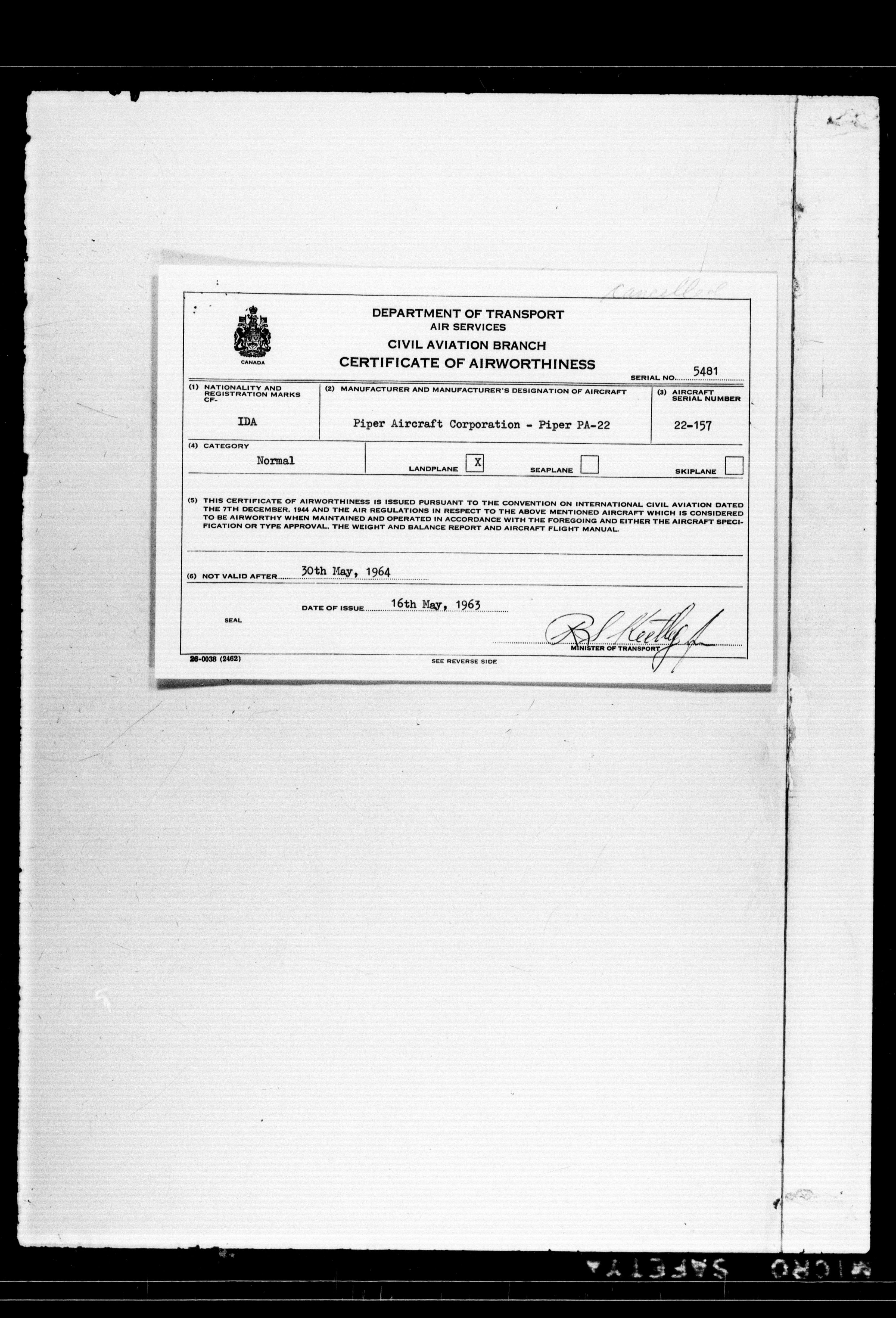 Department of Transport : Civil aircraft registration, inspection and operation files, block 5008, 1920-1986 - 7677