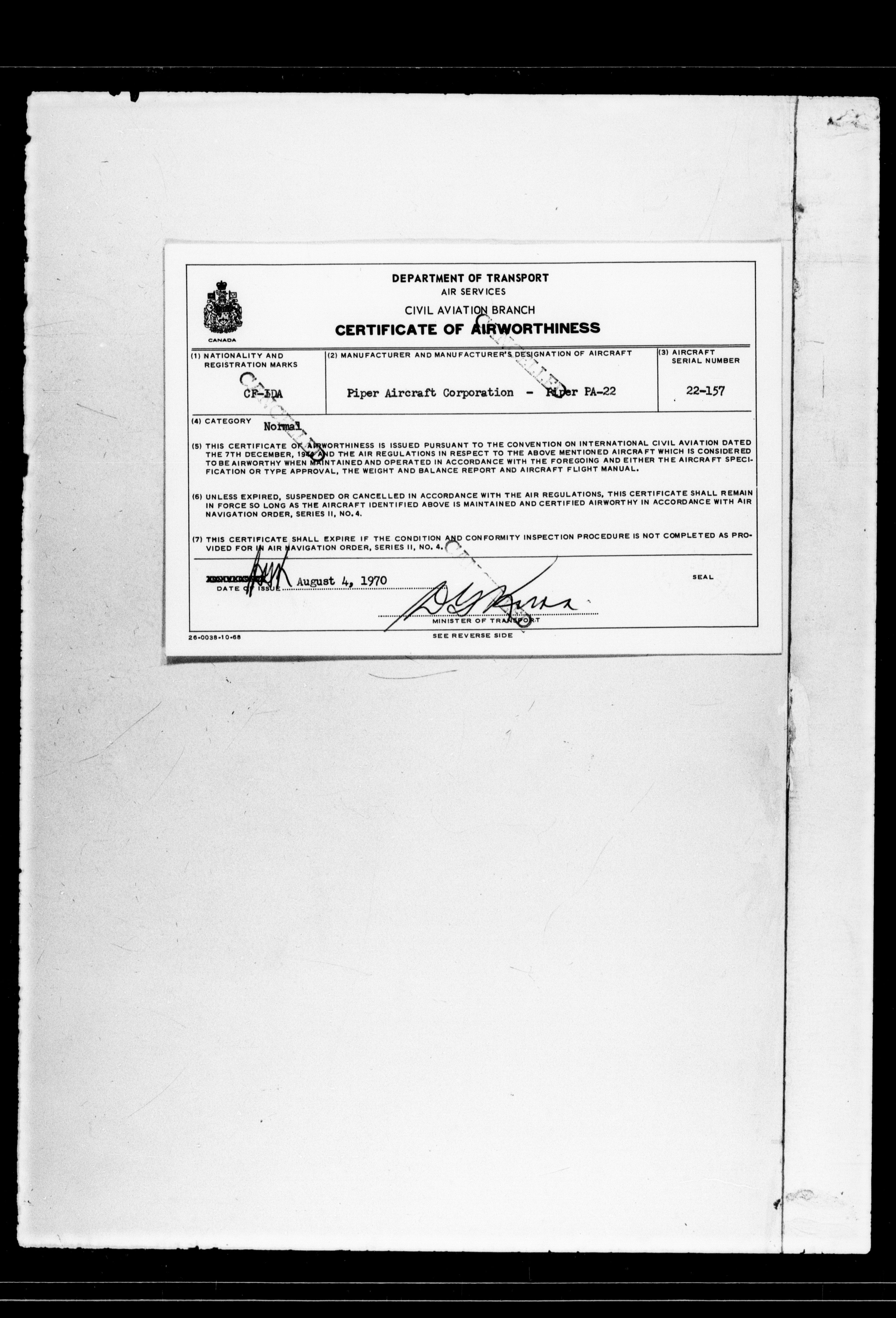 Department of Transport : Civil aircraft registration, inspection and operation files, block 5008, 1920-1986 - 7677