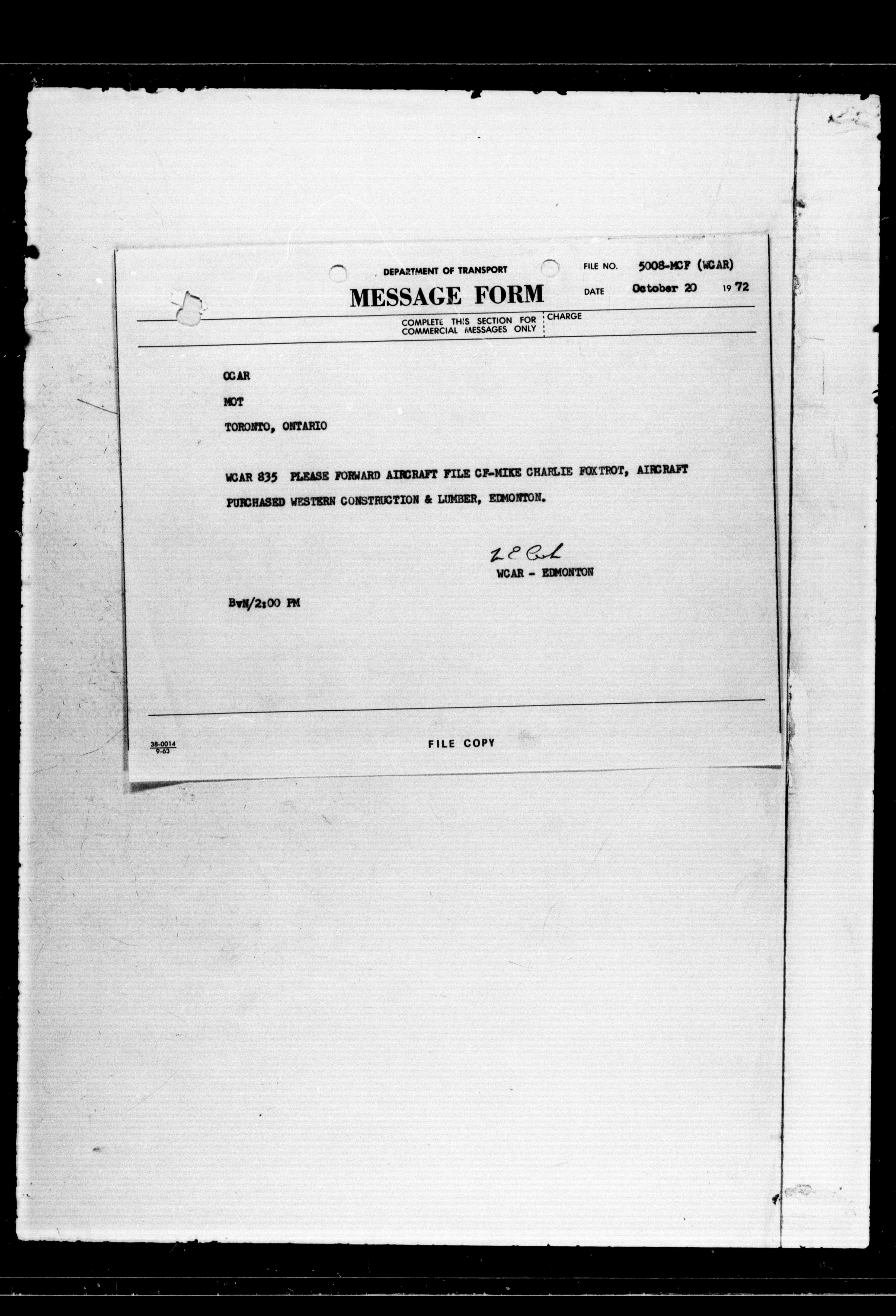 Department of Transport : Civil aircraft registration, inspection and operation files, block 5008, 1920-1986 - 7678