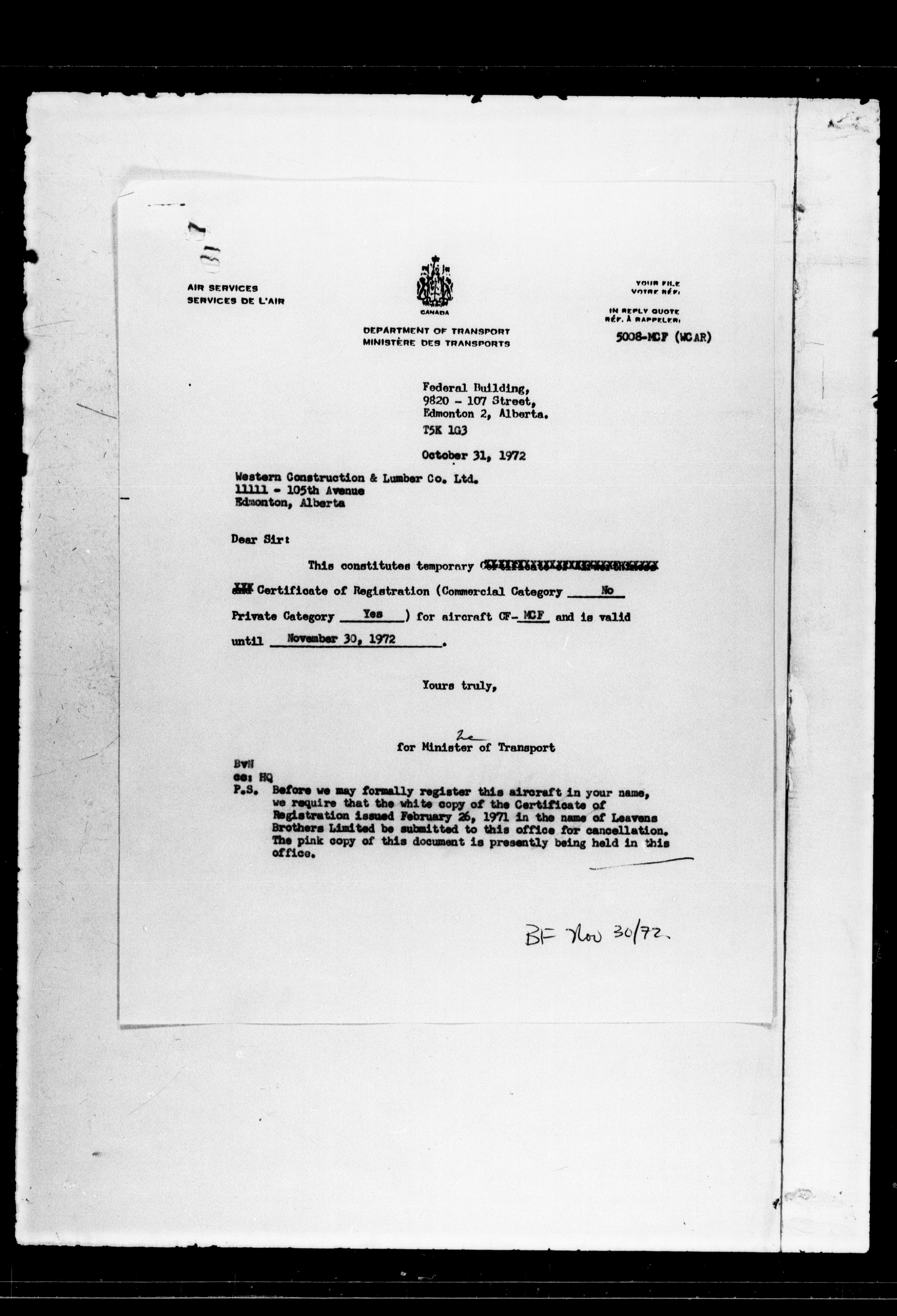 Department of Transport : Civil aircraft registration, inspection and operation files, block 5008, 1920-1986 - 7678