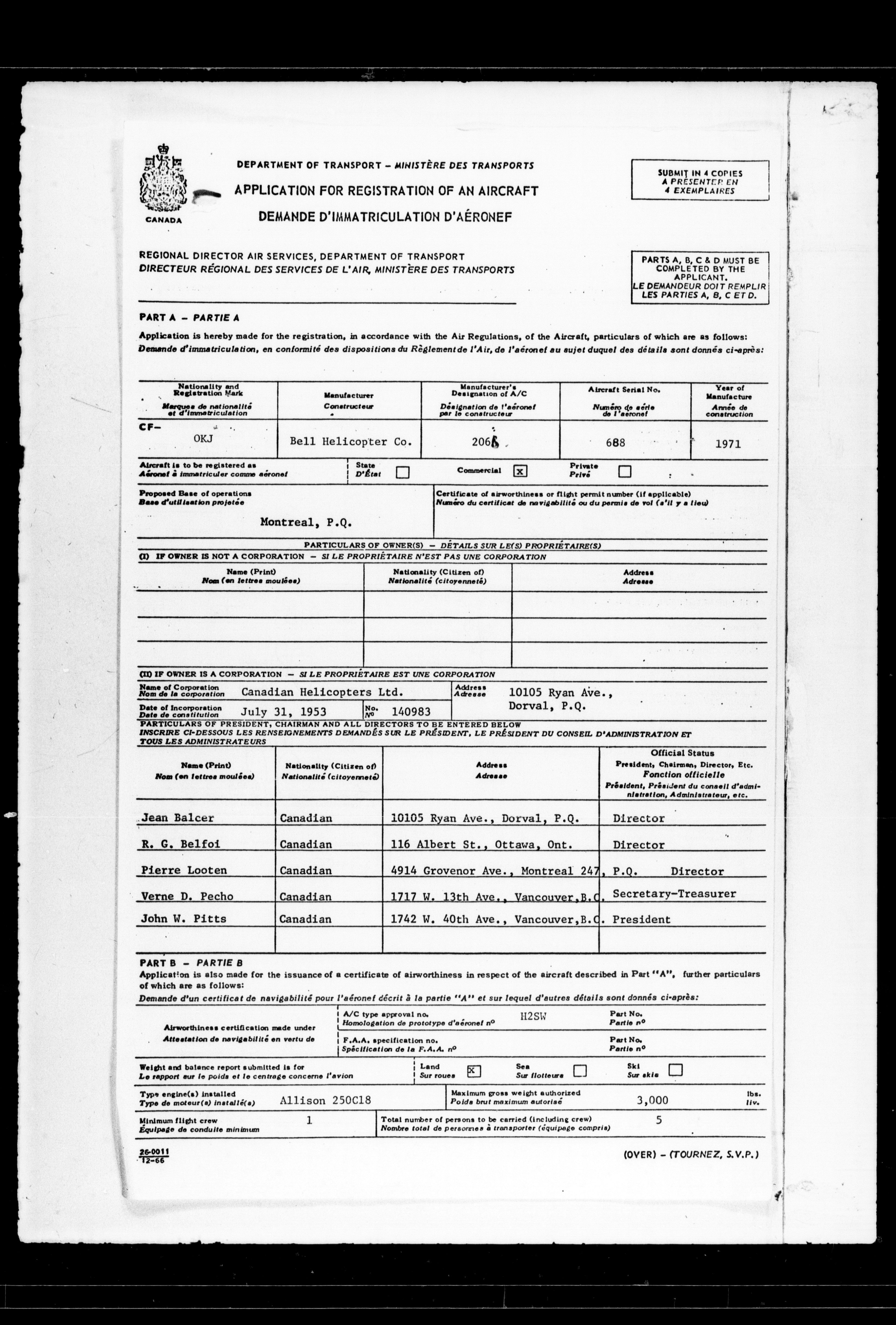 Department of Transport : Civil aircraft registration, inspection and operation files, 1920-1986 : T-7680