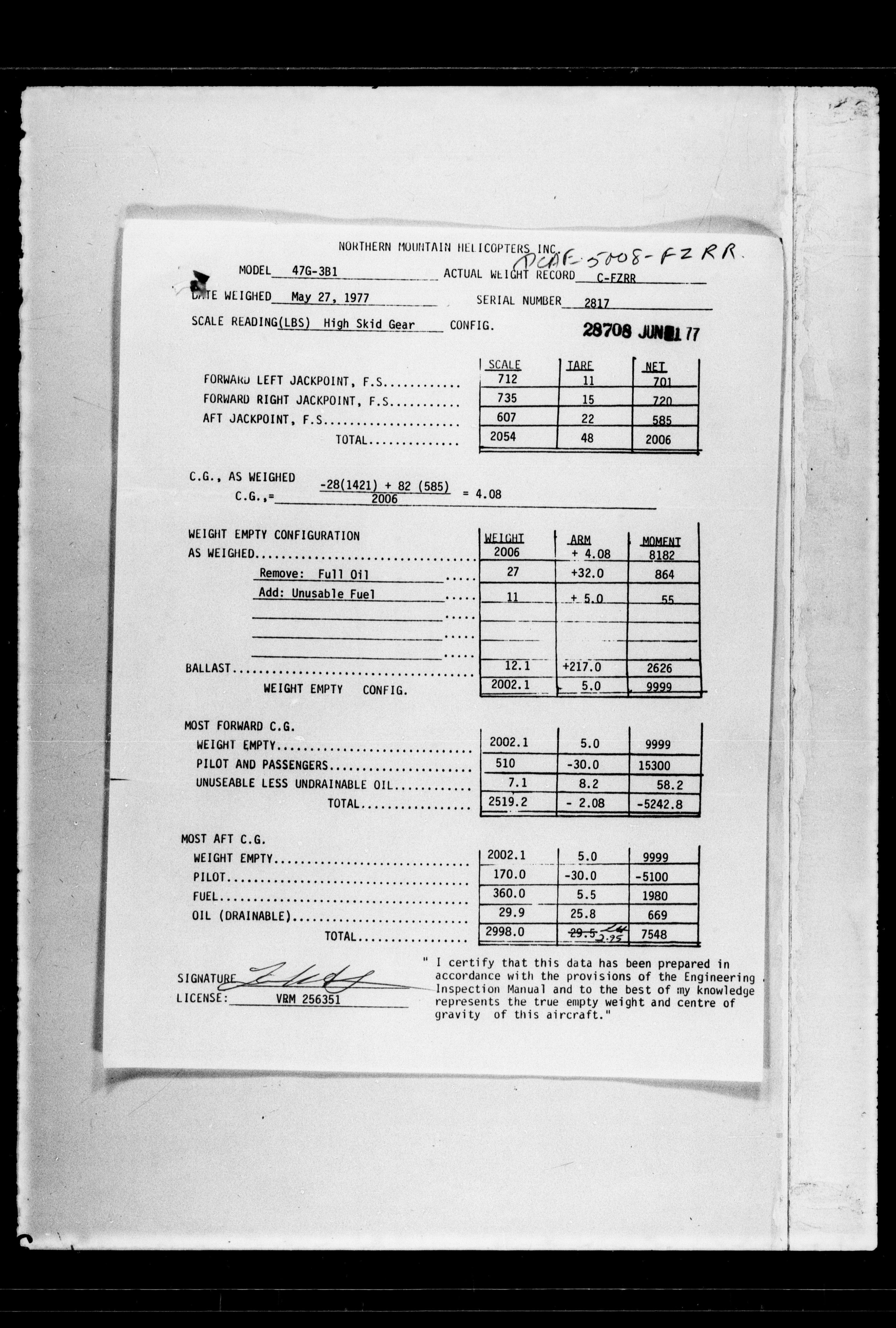Department of Transport : Civil aircraft registration, inspection and operation files, block 5008, 1920-1986 - 7685