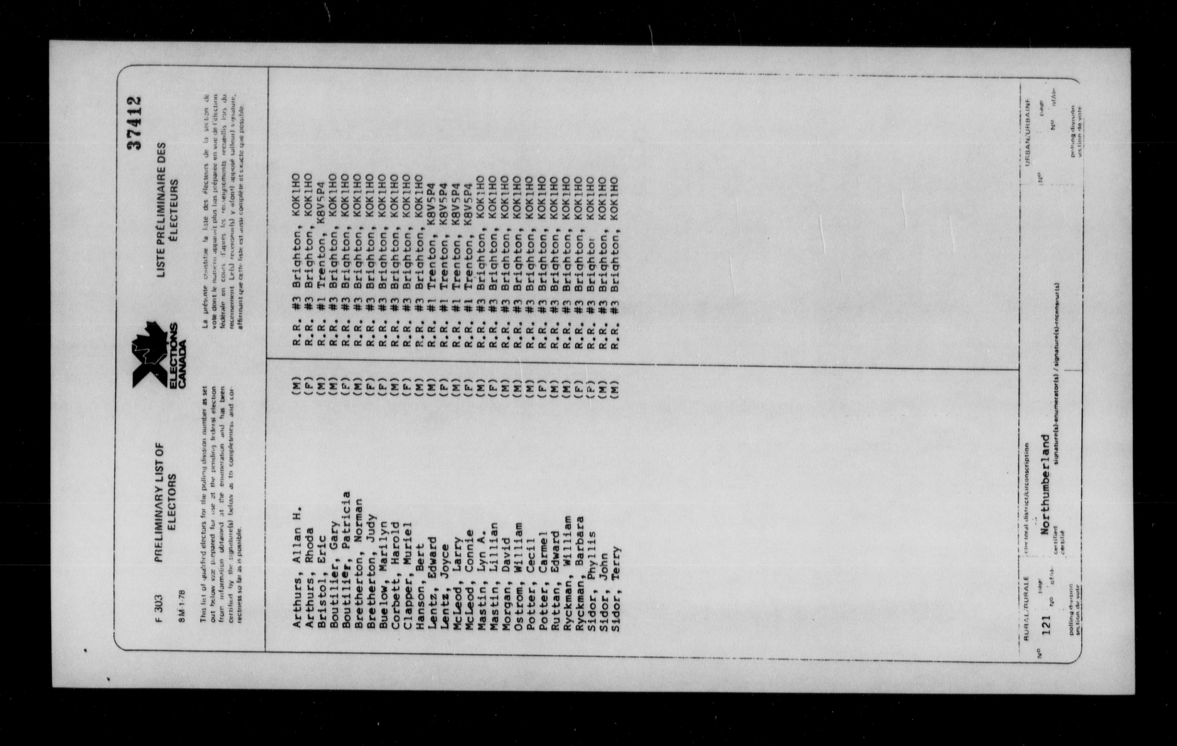 Preliminary voters' lists : Ontario, 1980 - 7693