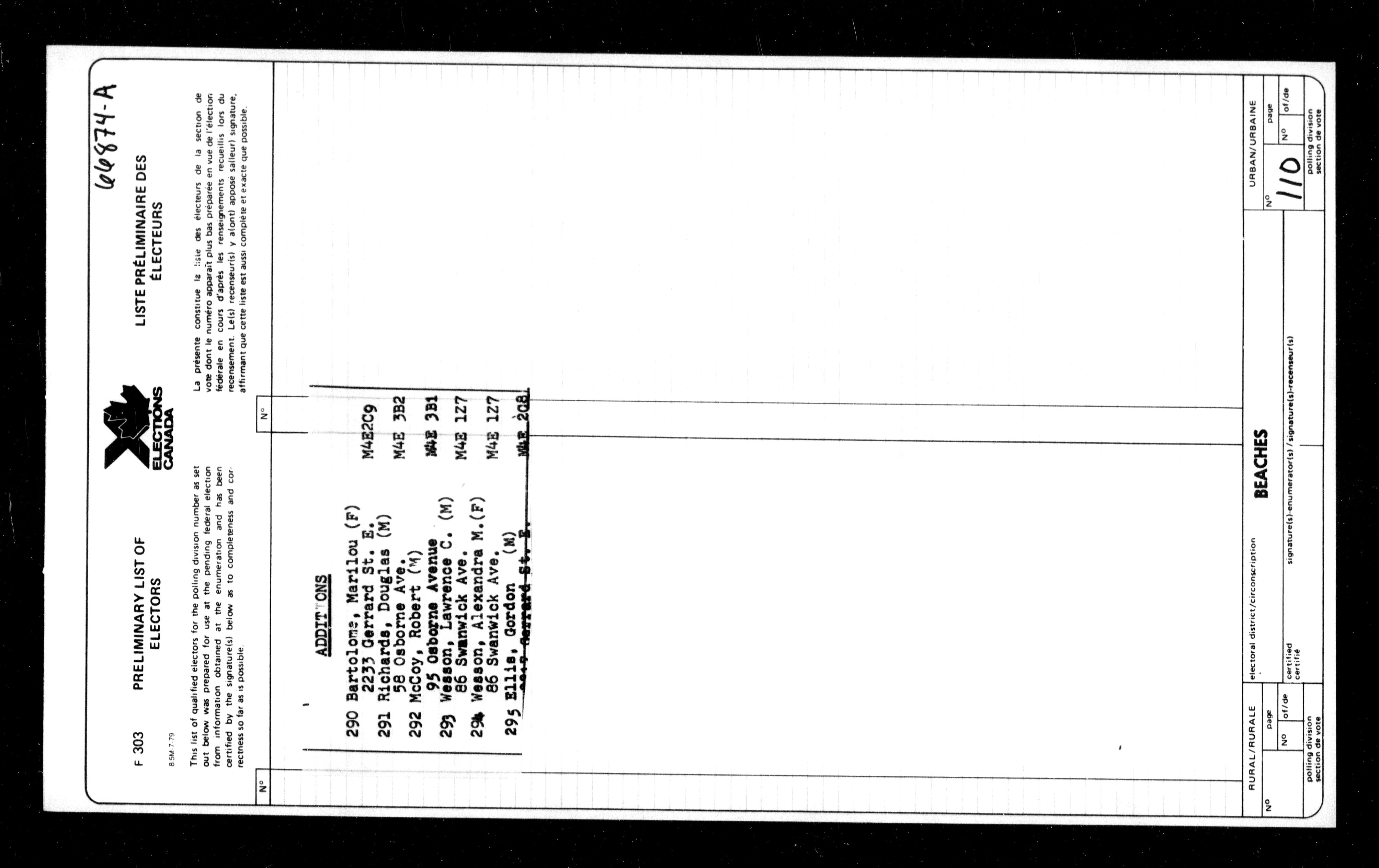 Preliminary voters' lists : Ontario, 1980 - 7698