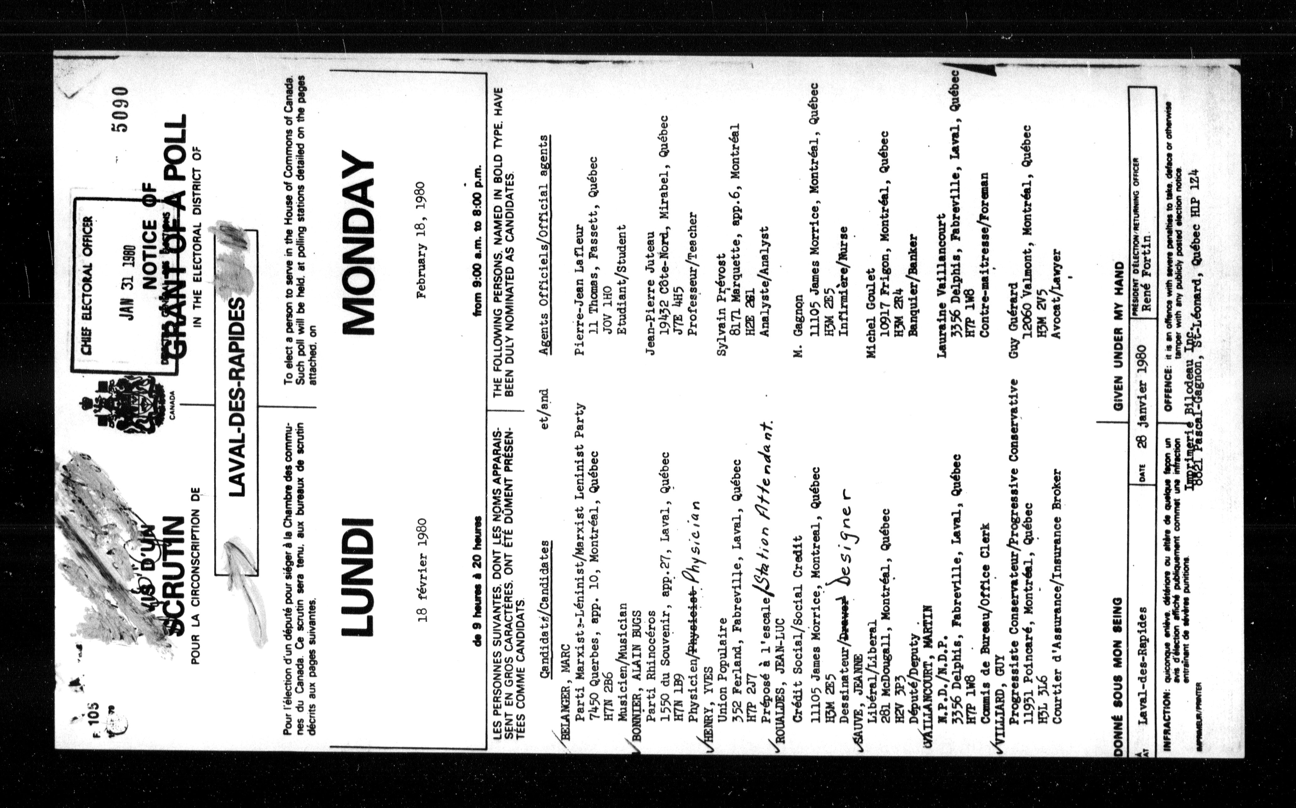 Office of the Chief Electoral Officer : Notices of grants of poll : T-7717
