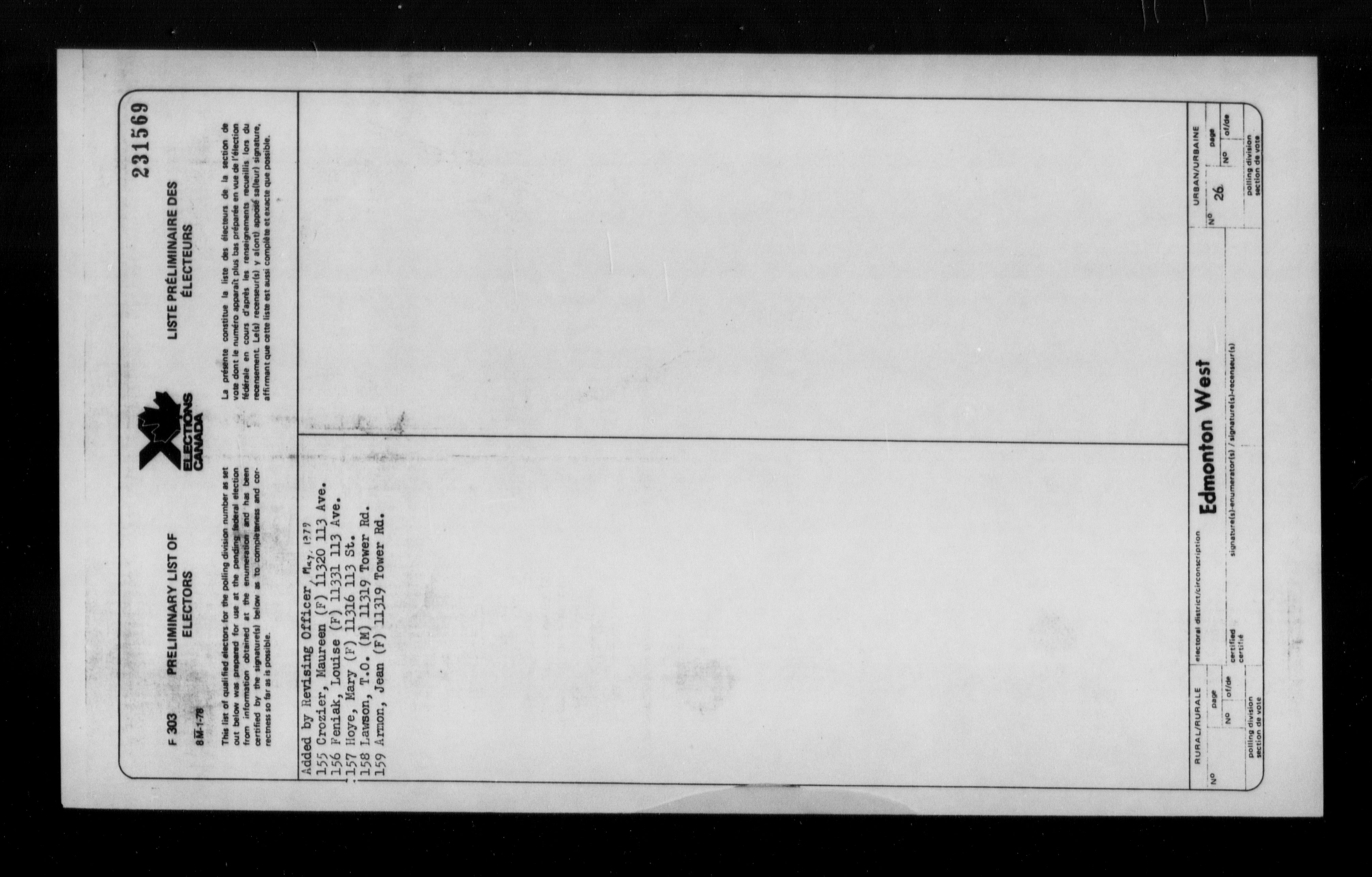 Preliminary voters' lists : Alberta, 1980 - 7721