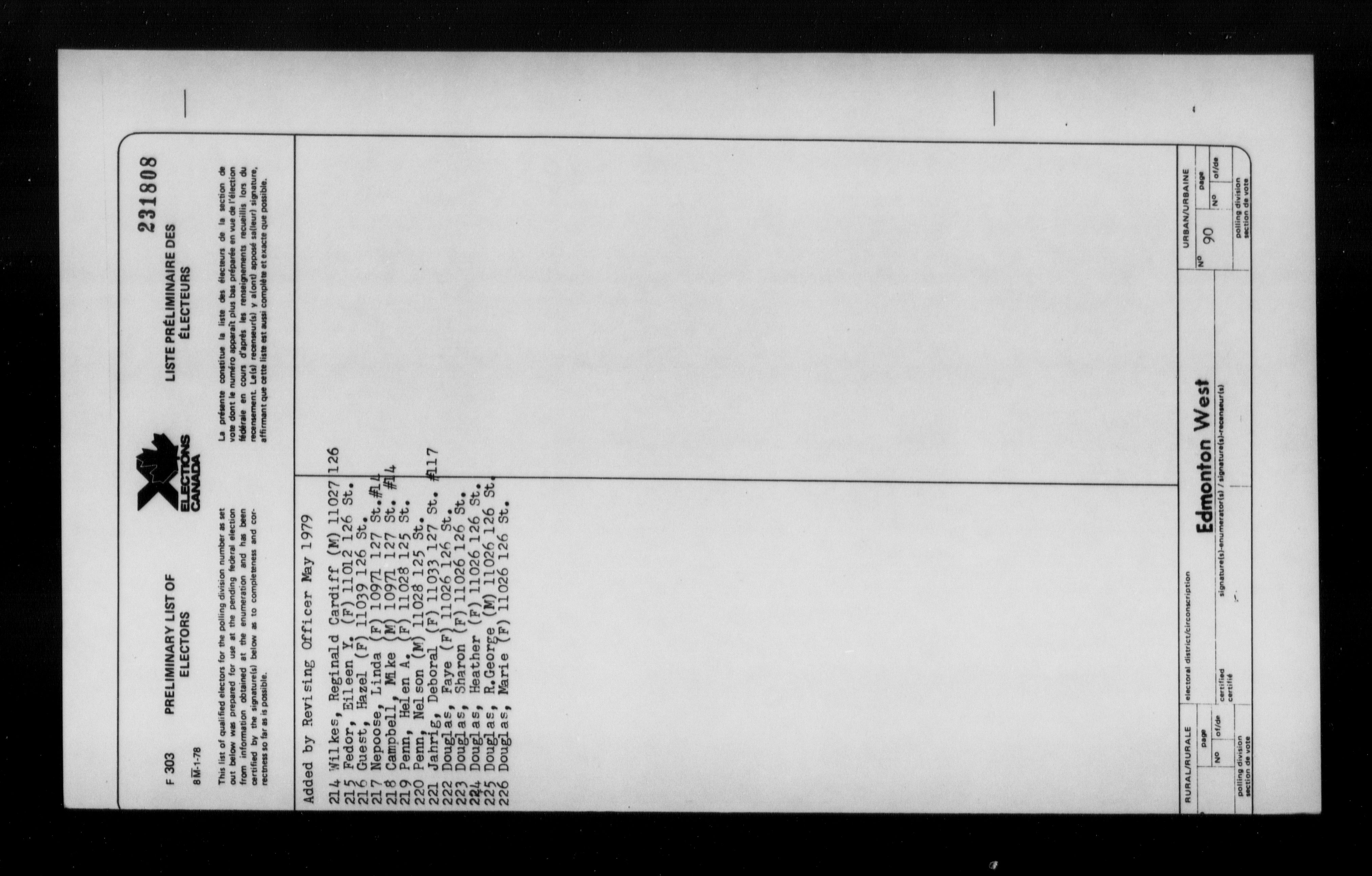 Preliminary voters' lists : Alberta, 1980 - 7721