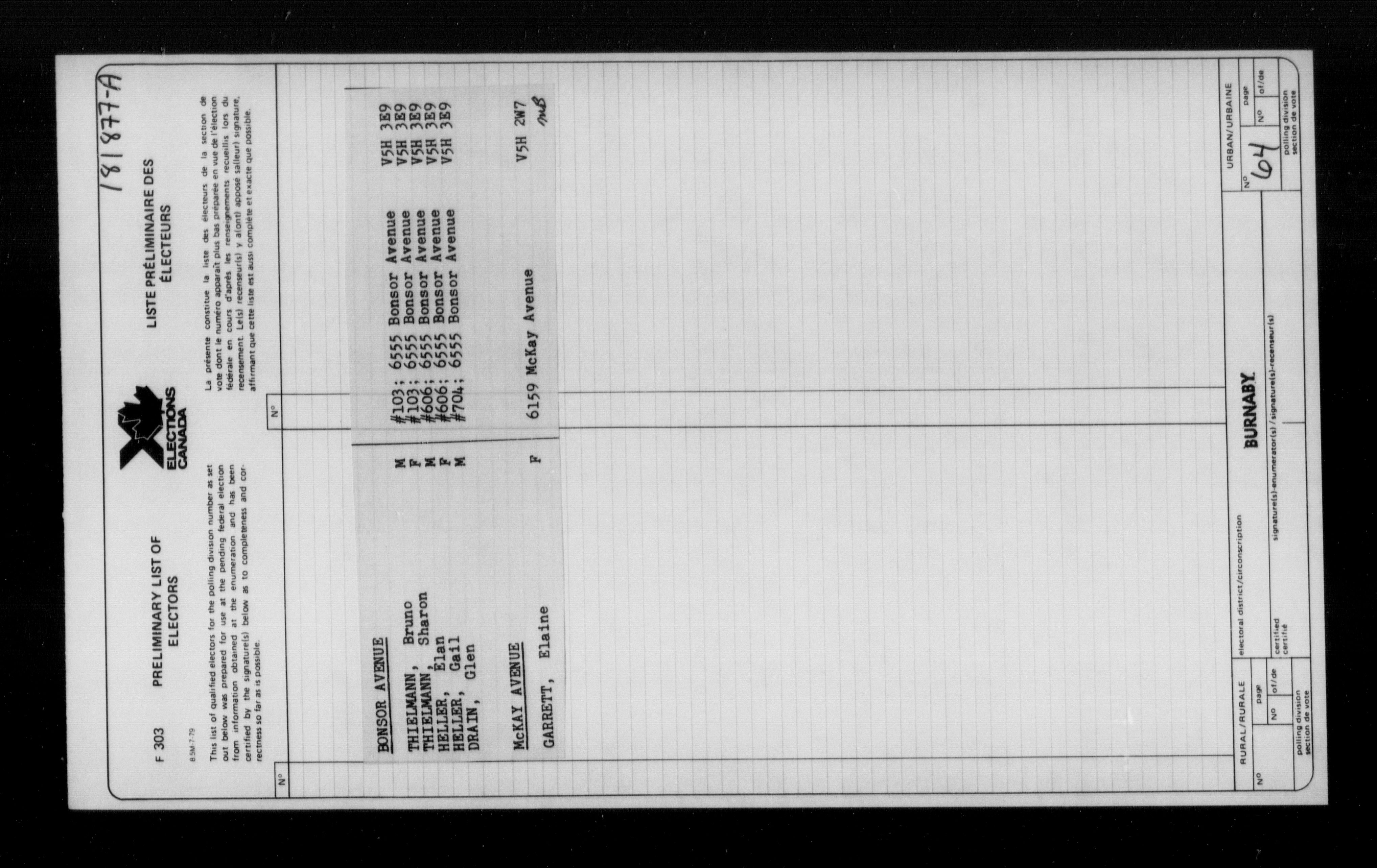 Preliminary voters' lists : British Columbia, 1980 - 7723