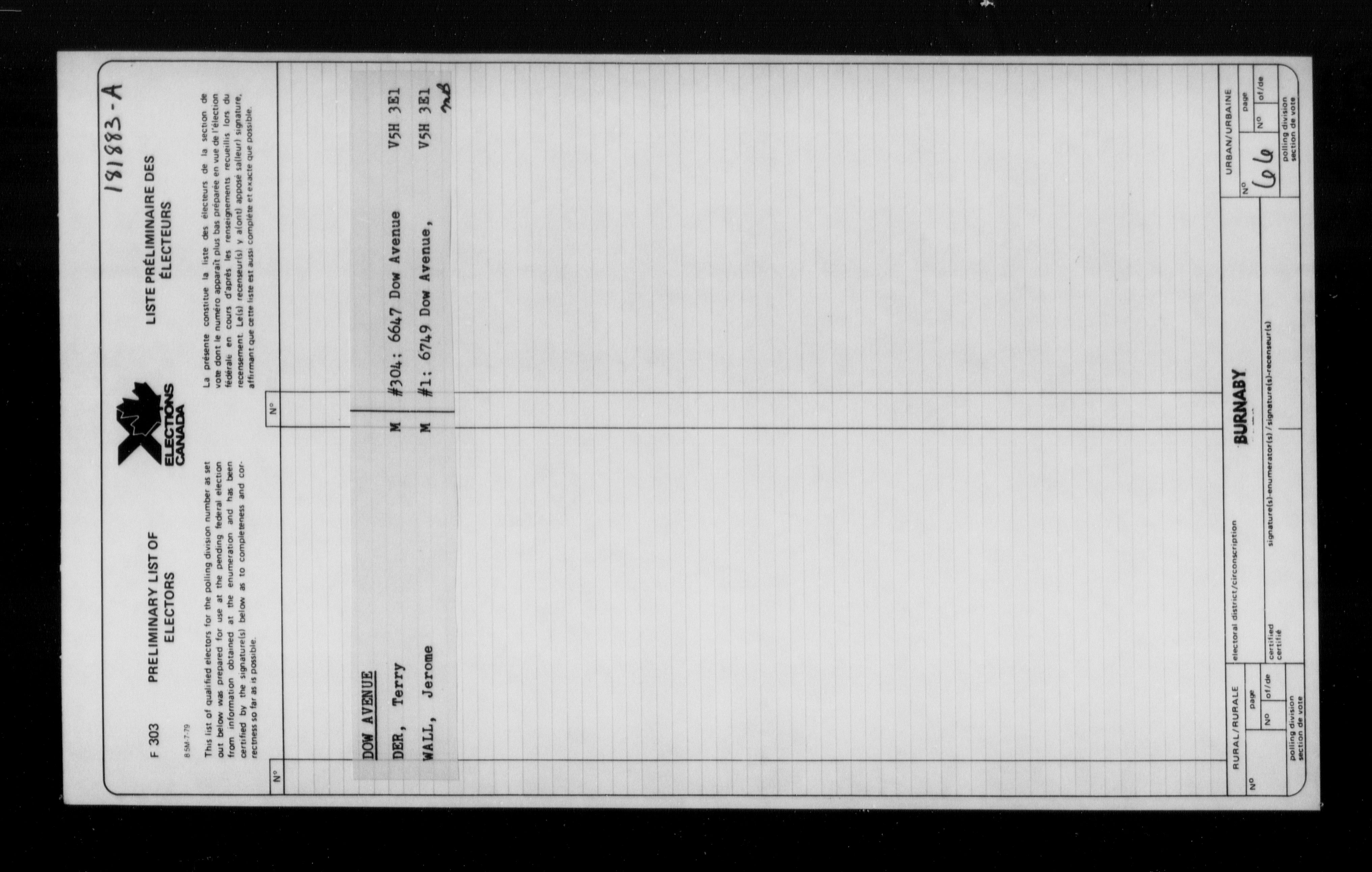Preliminary voters' lists : British Columbia, 1980 - 7723