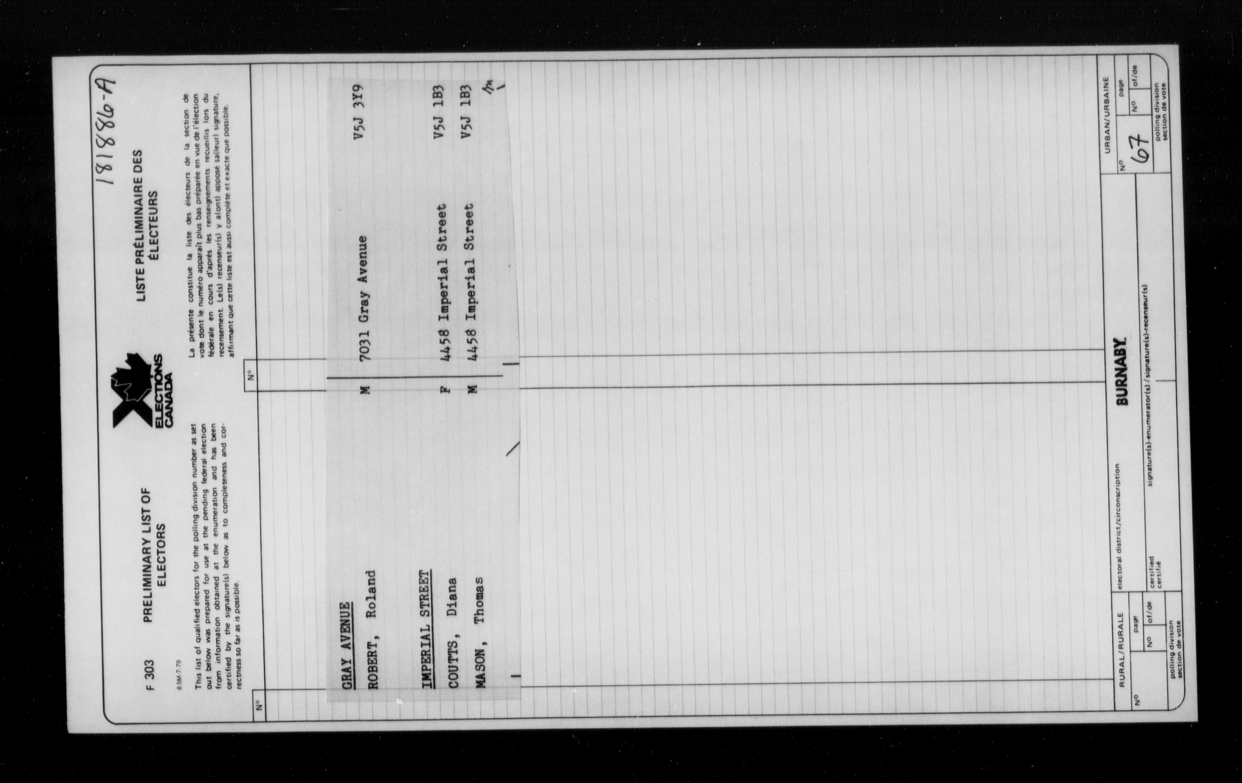 Preliminary voters' lists : British Columbia, 1980 - 7723