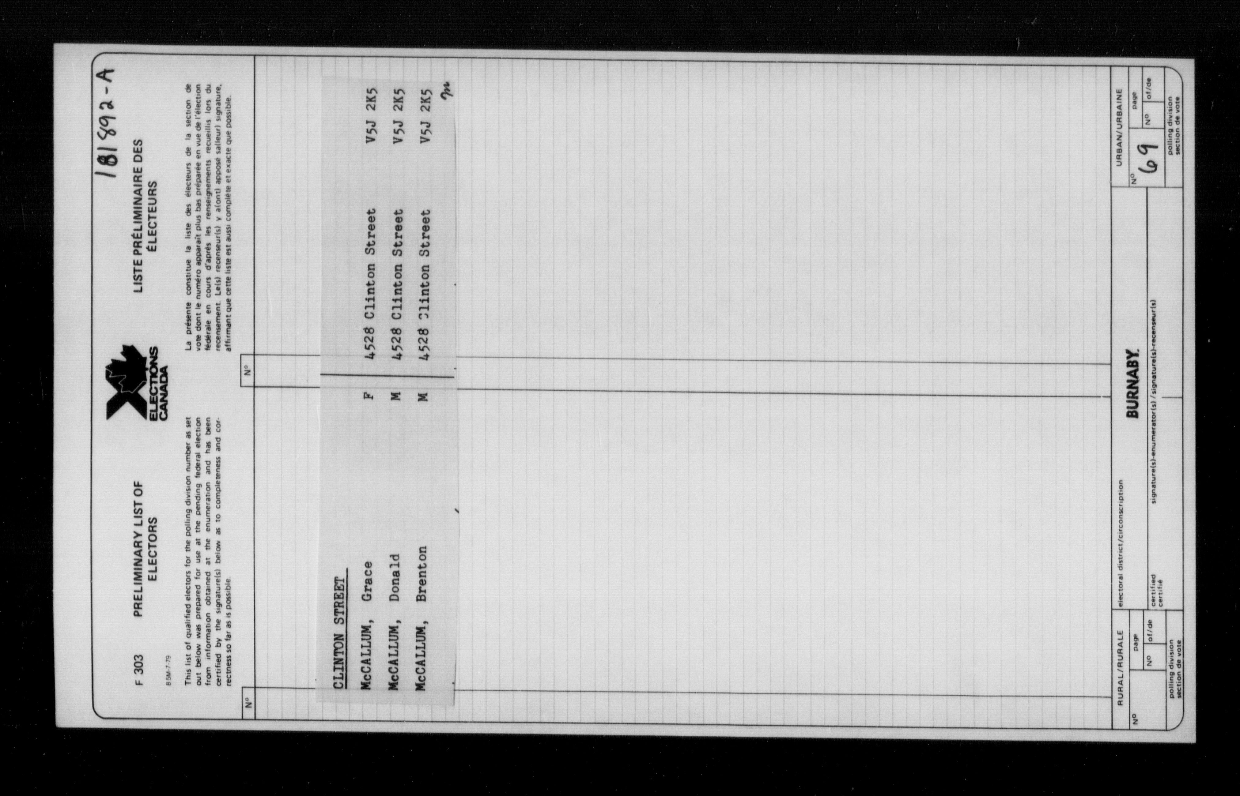 Preliminary voters' lists : British Columbia, 1980 - 7723