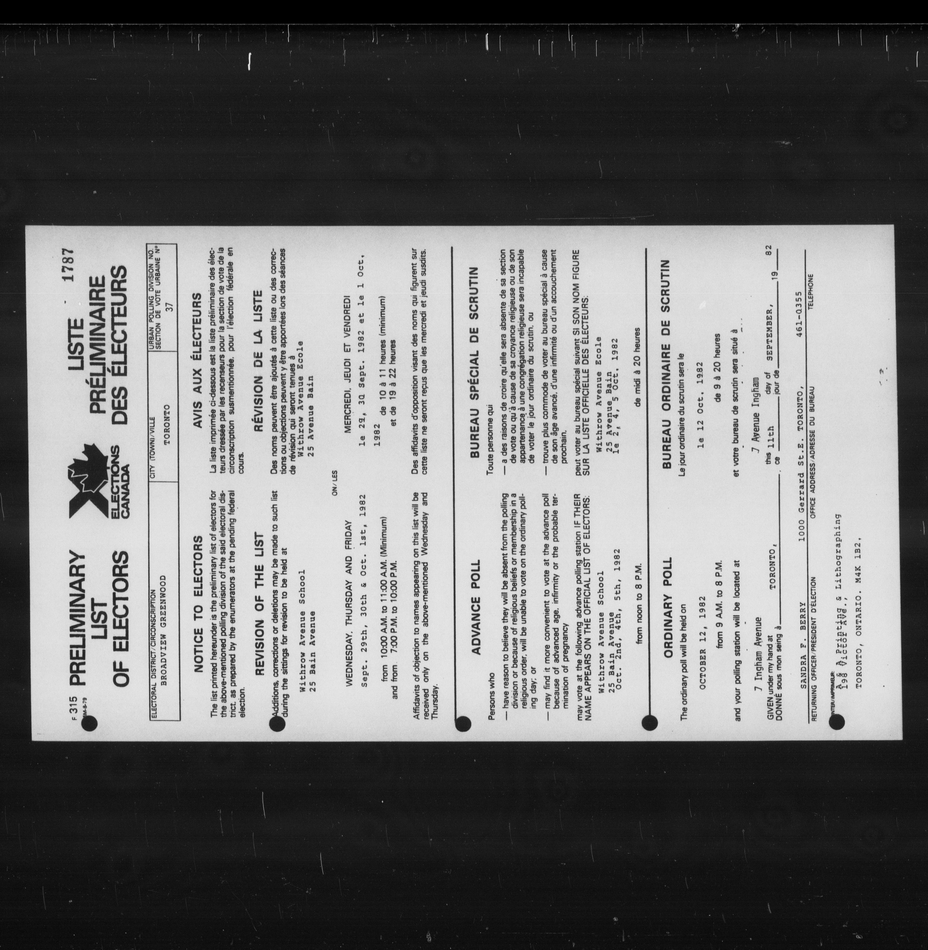 By-Elections : Ontario, 1982 - 7749