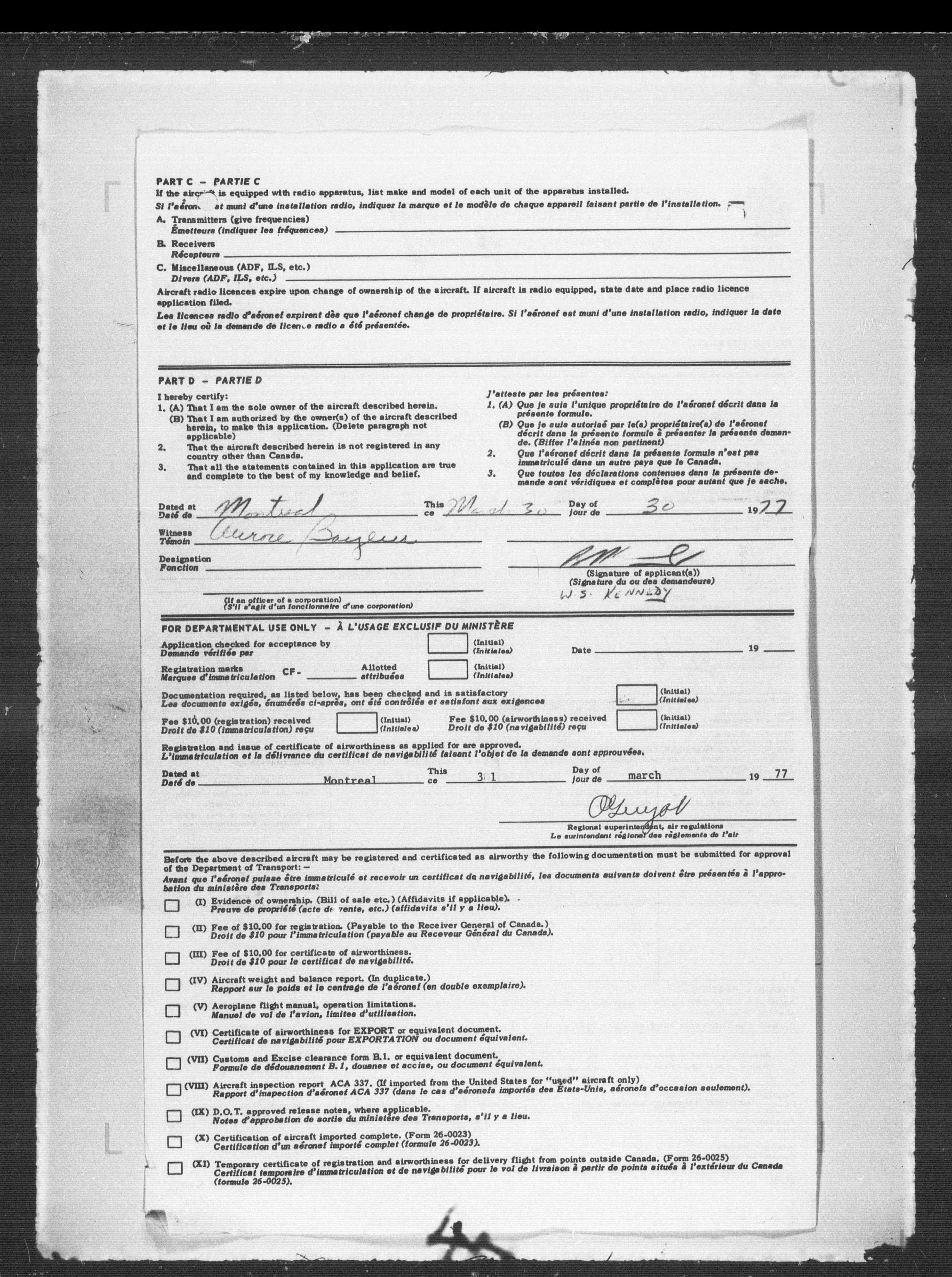 Department of Transport : Civil aircraft registration, inspection and operation files, block 5008, 1920-1986 - 7752