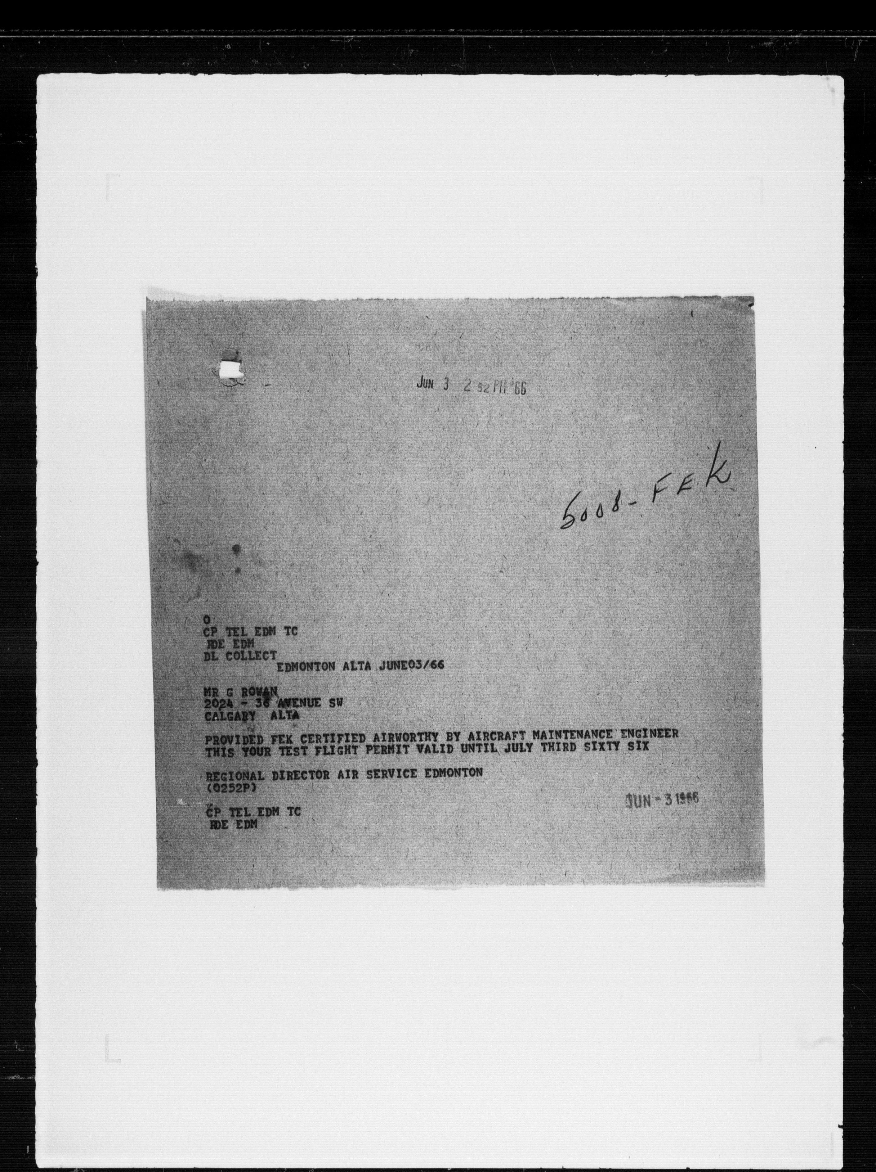 Department of Transport : Civil aircraft registration, inspection and operation files, block 5008, 1920-1986 - 7755