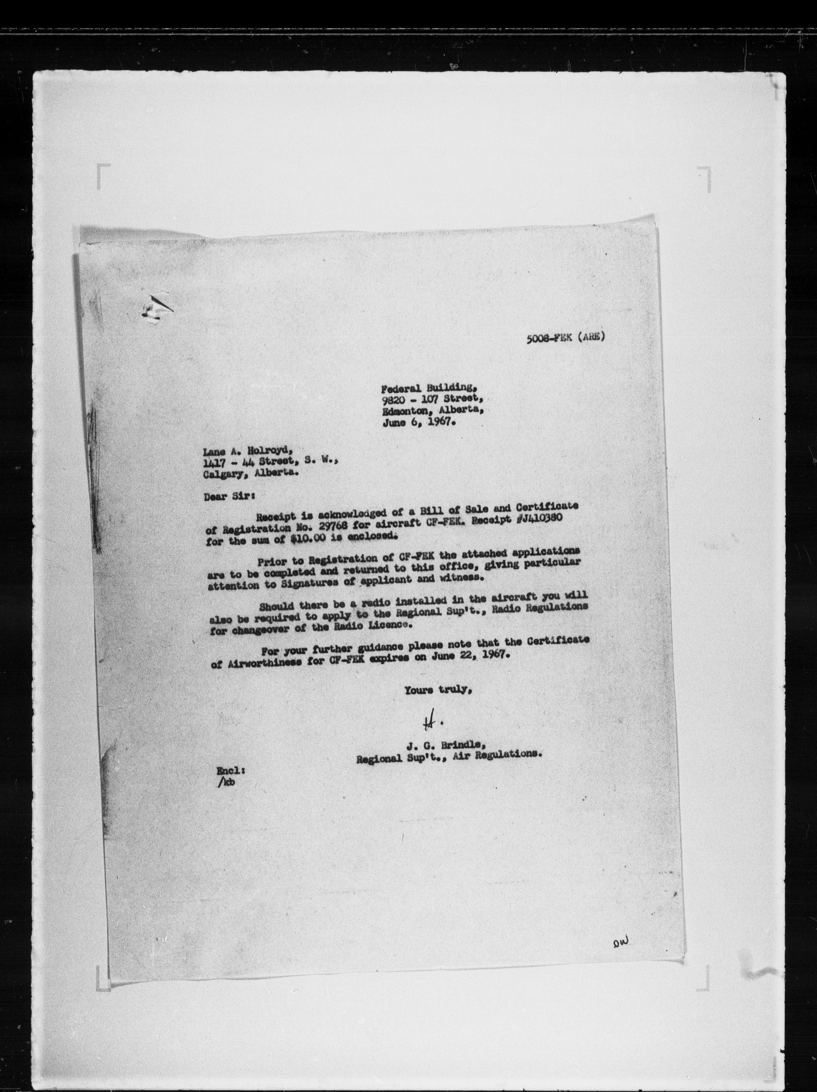 Department of Transport : Civil aircraft registration, inspection and operation files, block 5008, 1920-1986 - 7755