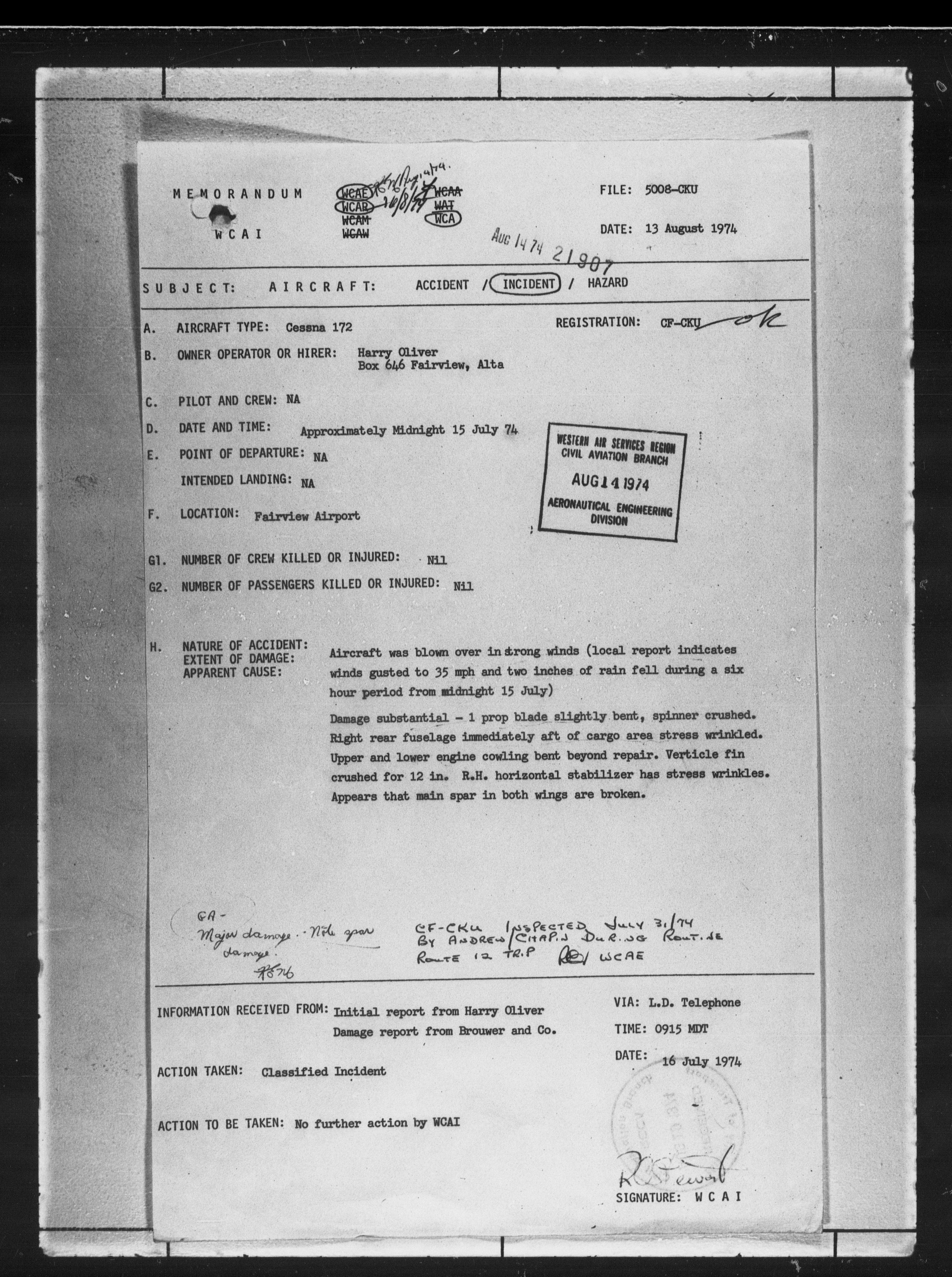 Department of Transport : Civil aircraft registration, inspection and operation files, block 5008, 1920-1986 - 7756