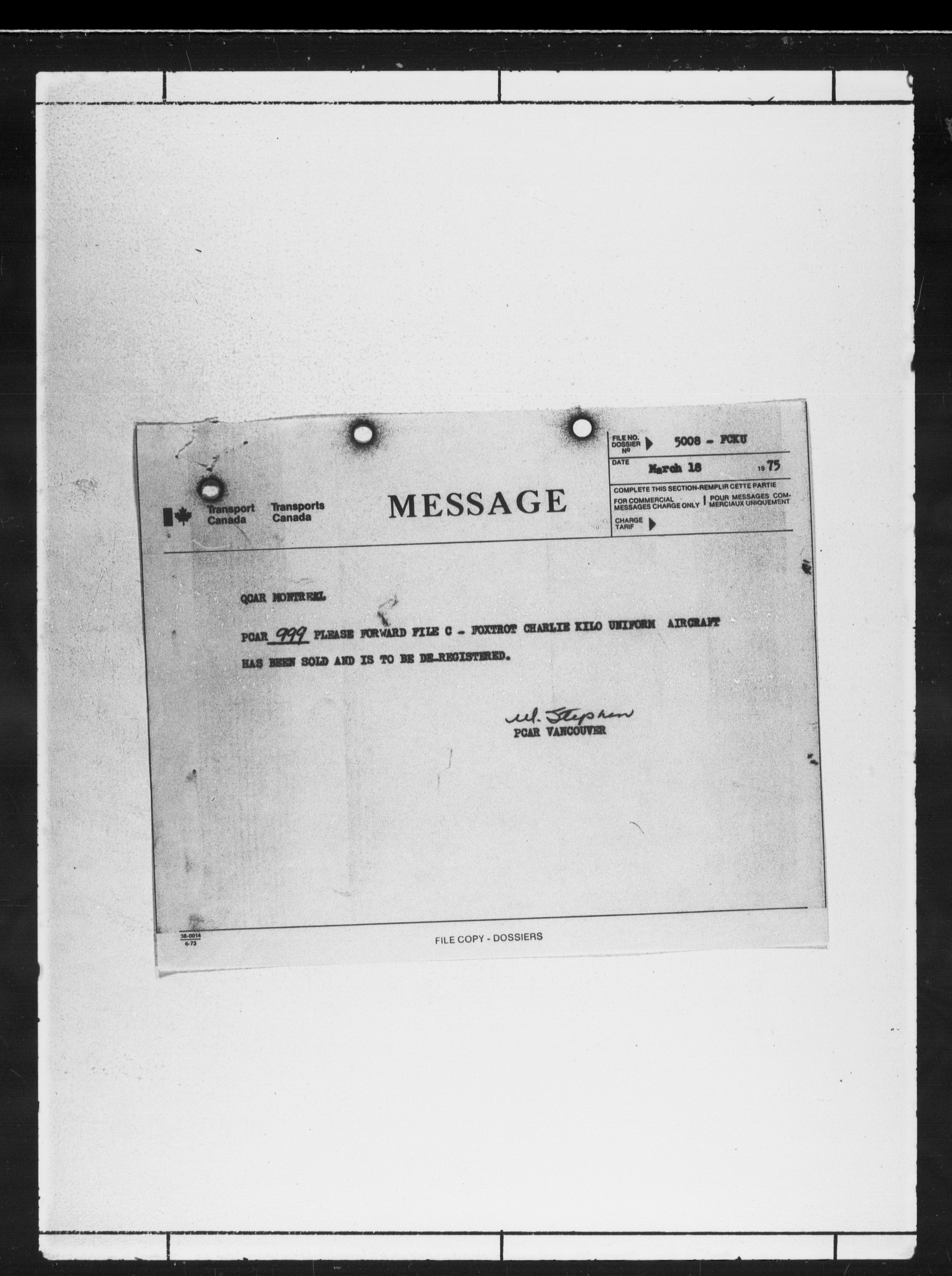 Department of Transport : Civil aircraft registration, inspection and operation files, block 5008, 1920-1986 - 7756