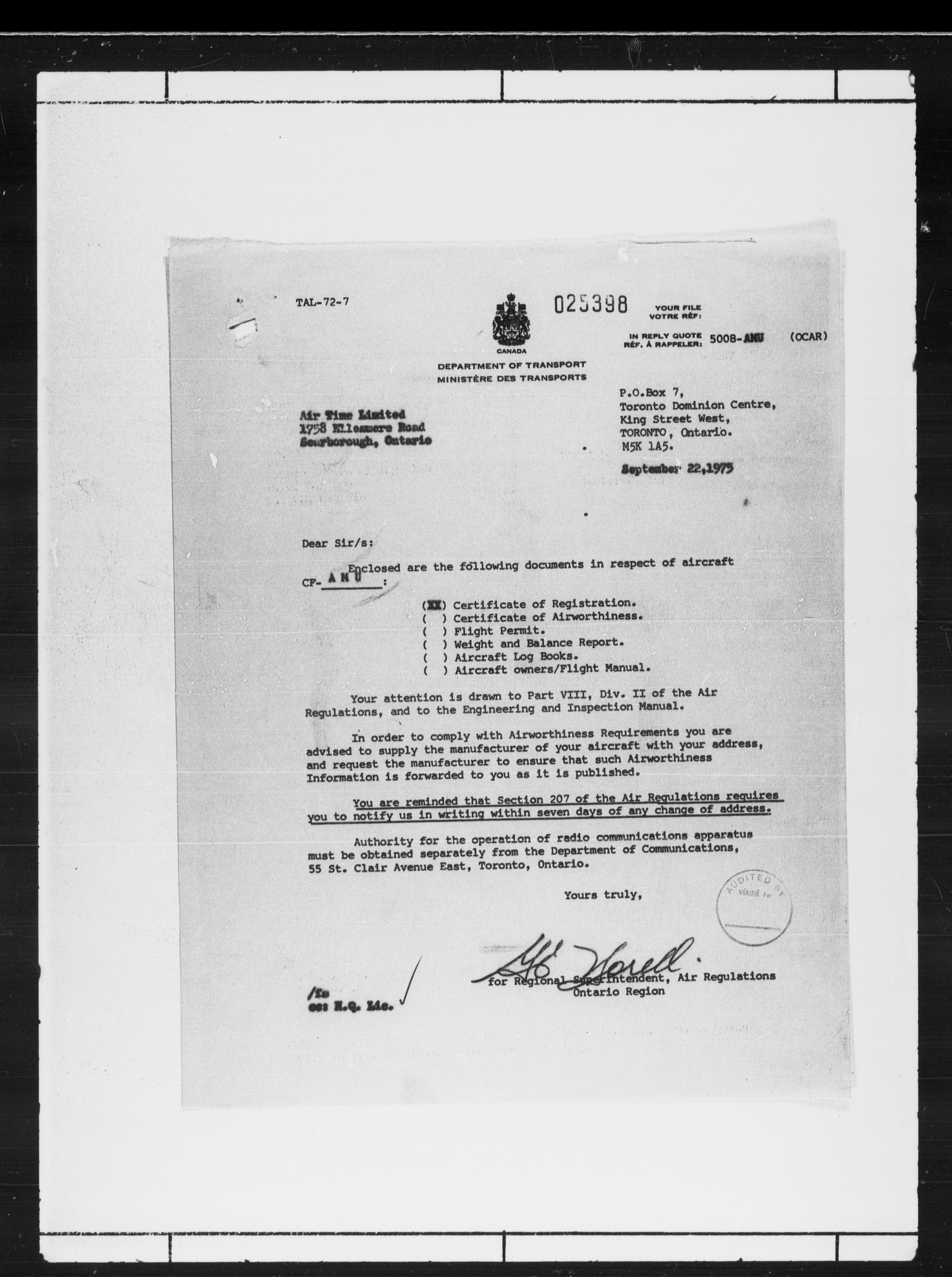 Department of Transport : Civil aircraft registration, inspection and operation files, block 5008, 1920-1986 - 7756
