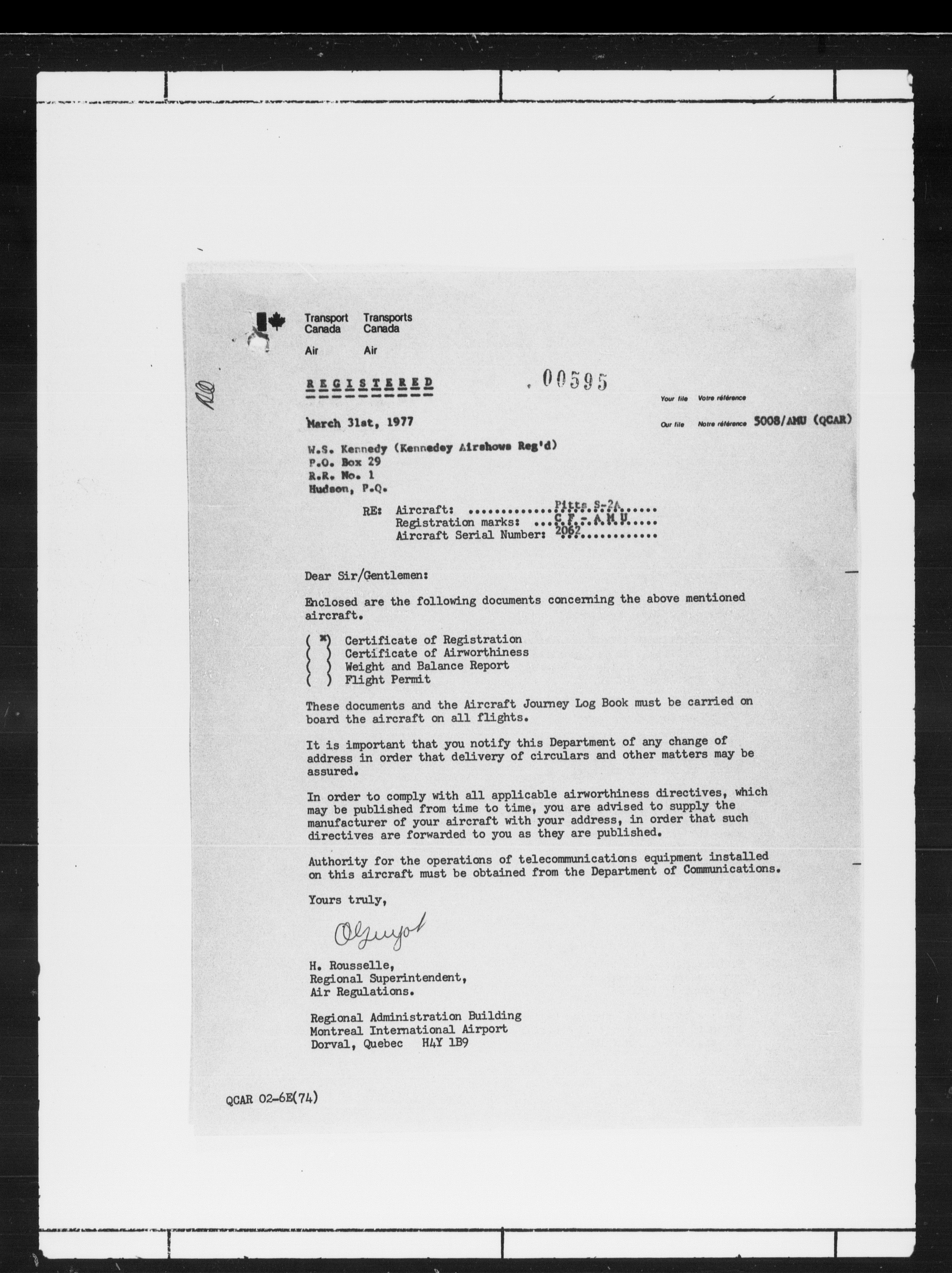 Department of Transport : Civil aircraft registration, inspection and operation files, block 5008, 1920-1986 - 7756