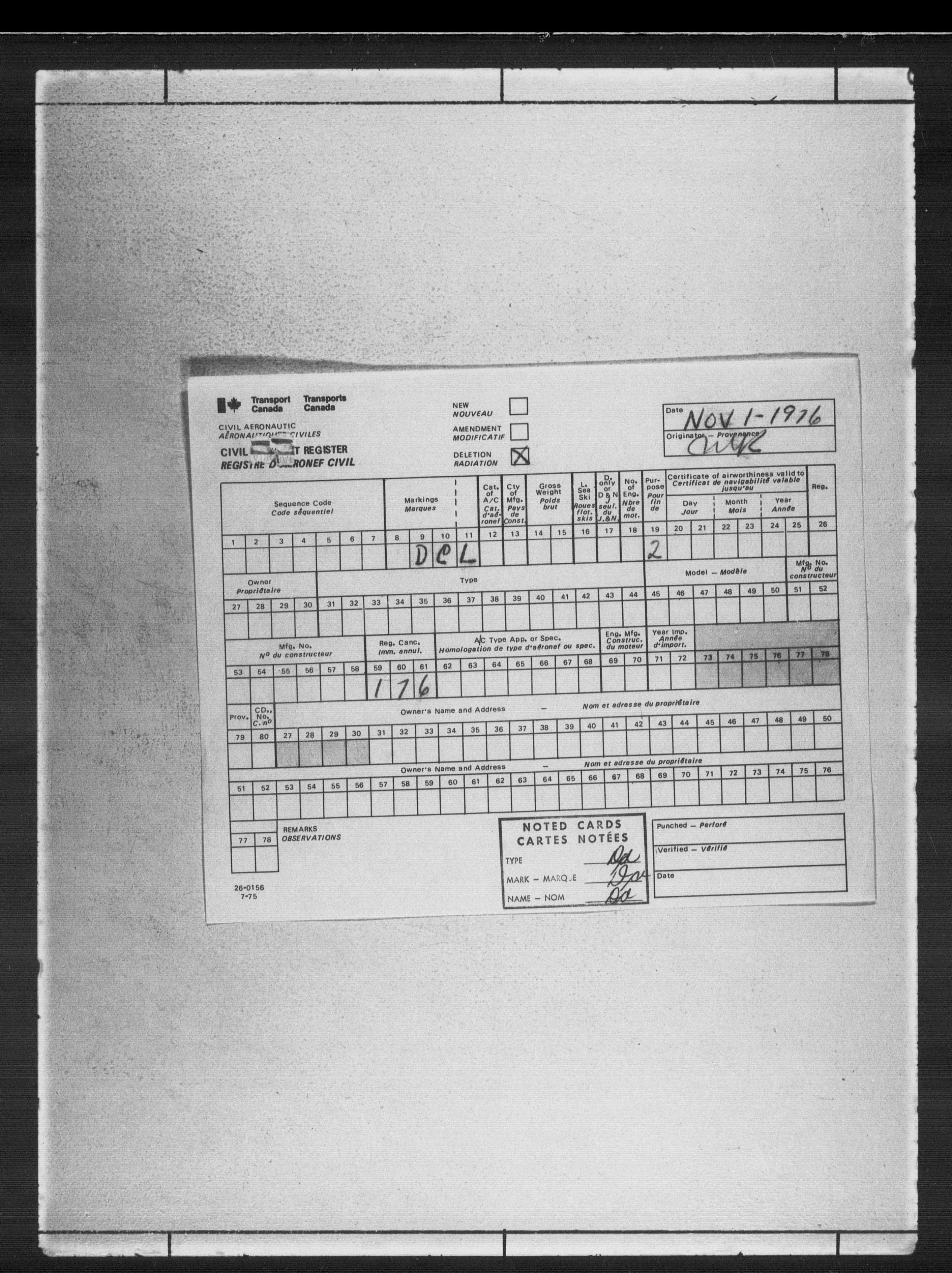 Department of Transport : Civil aircraft registration, inspection and operation files, block 5008, 1920-1986 - 7758
