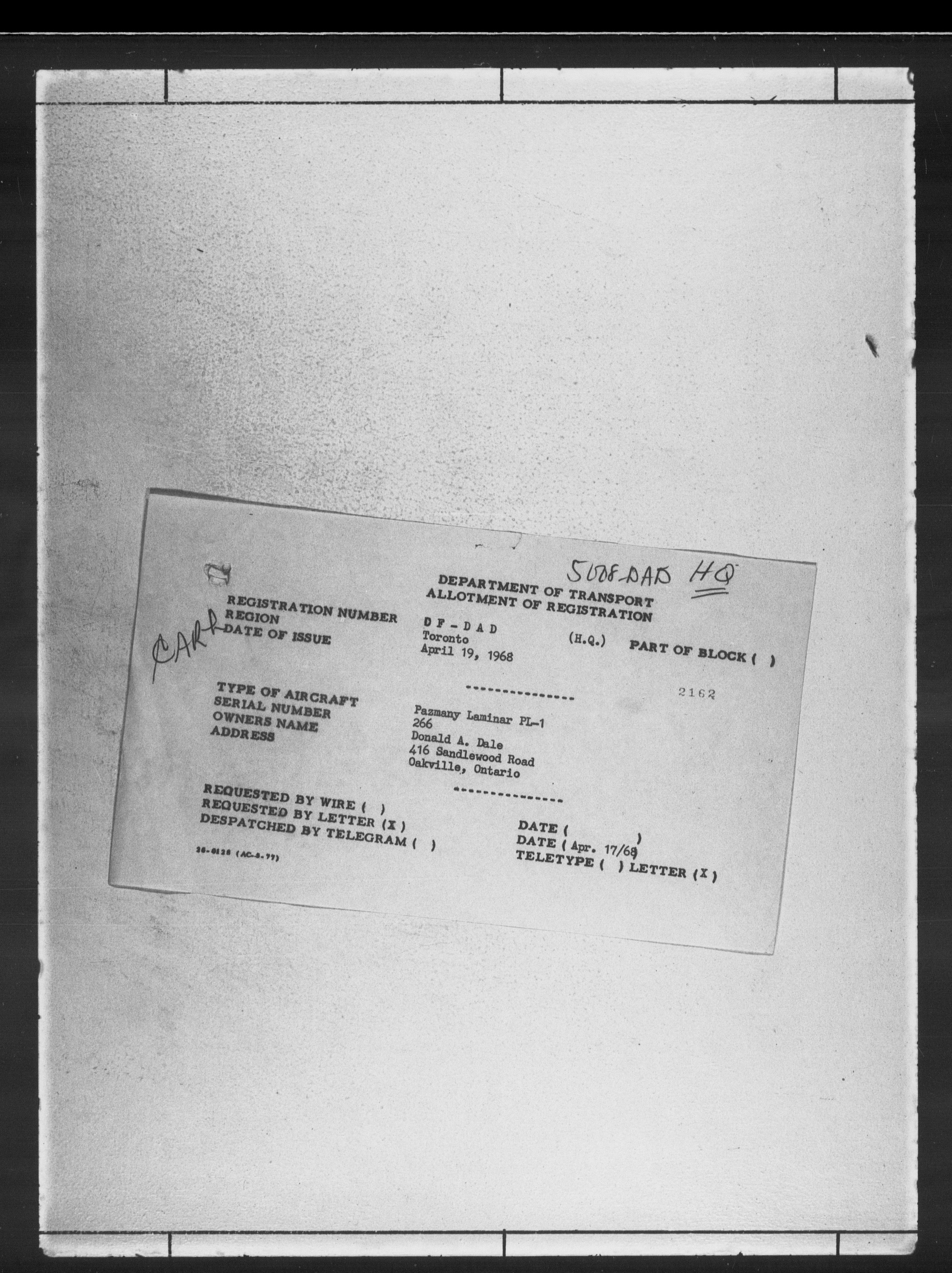Department of Transport : Civil aircraft registration, inspection and operation files, block 5008, 1920-1986 - 7758