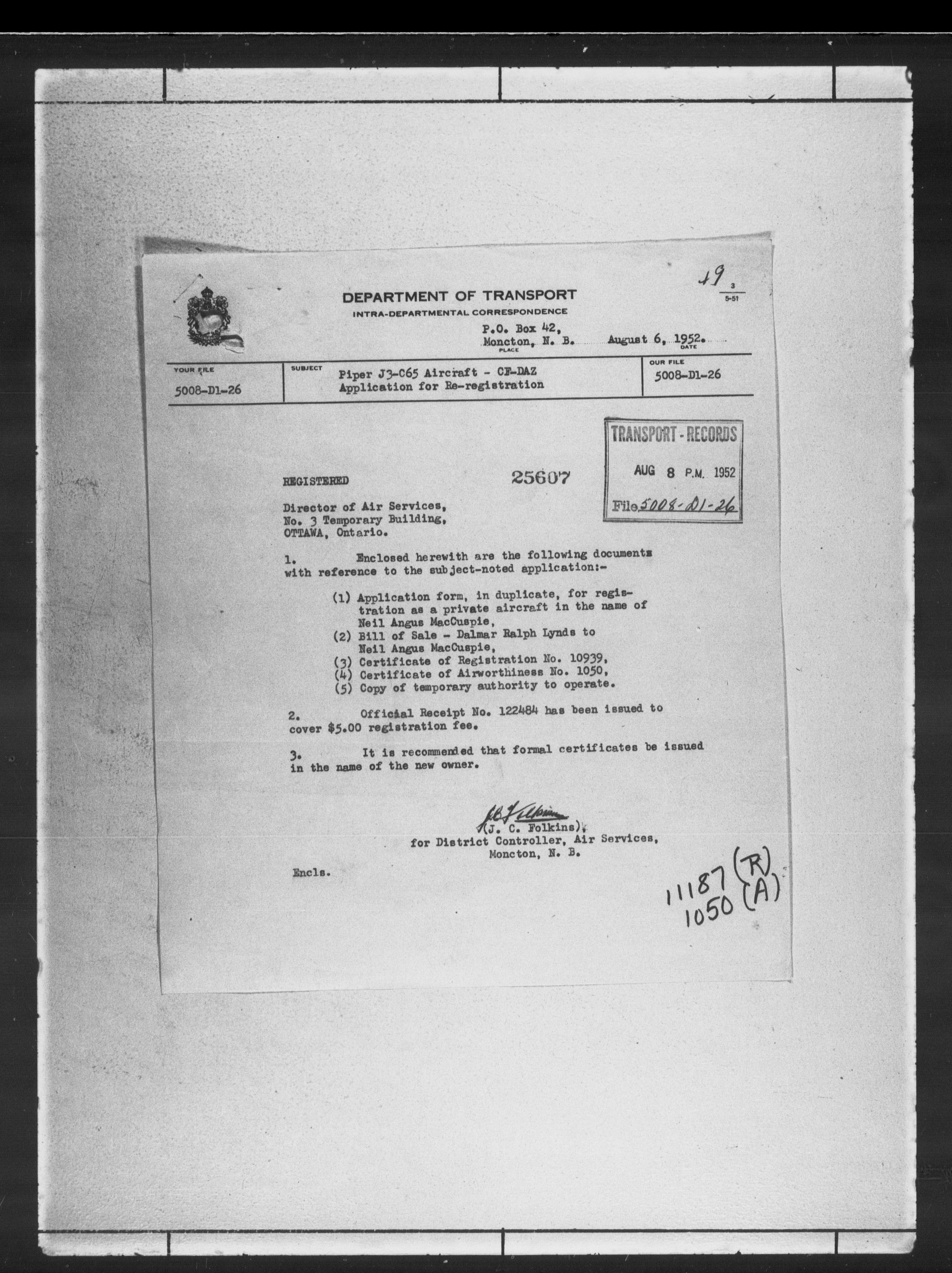 Department of Transport : Civil aircraft registration, inspection and operation files, block 5008, 1920-1986 - 7758