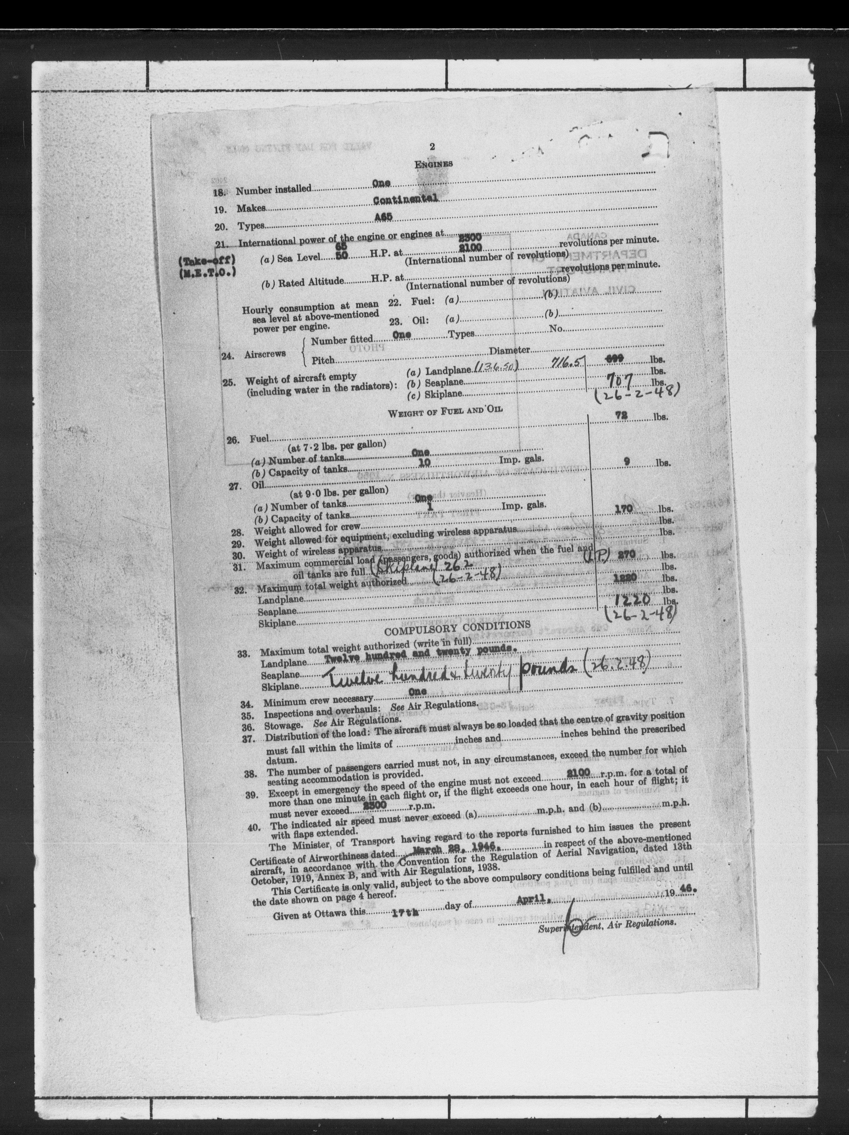 Department of Transport : Civil aircraft registration, inspection and operation files, block 5008, 1920-1986 - 7758