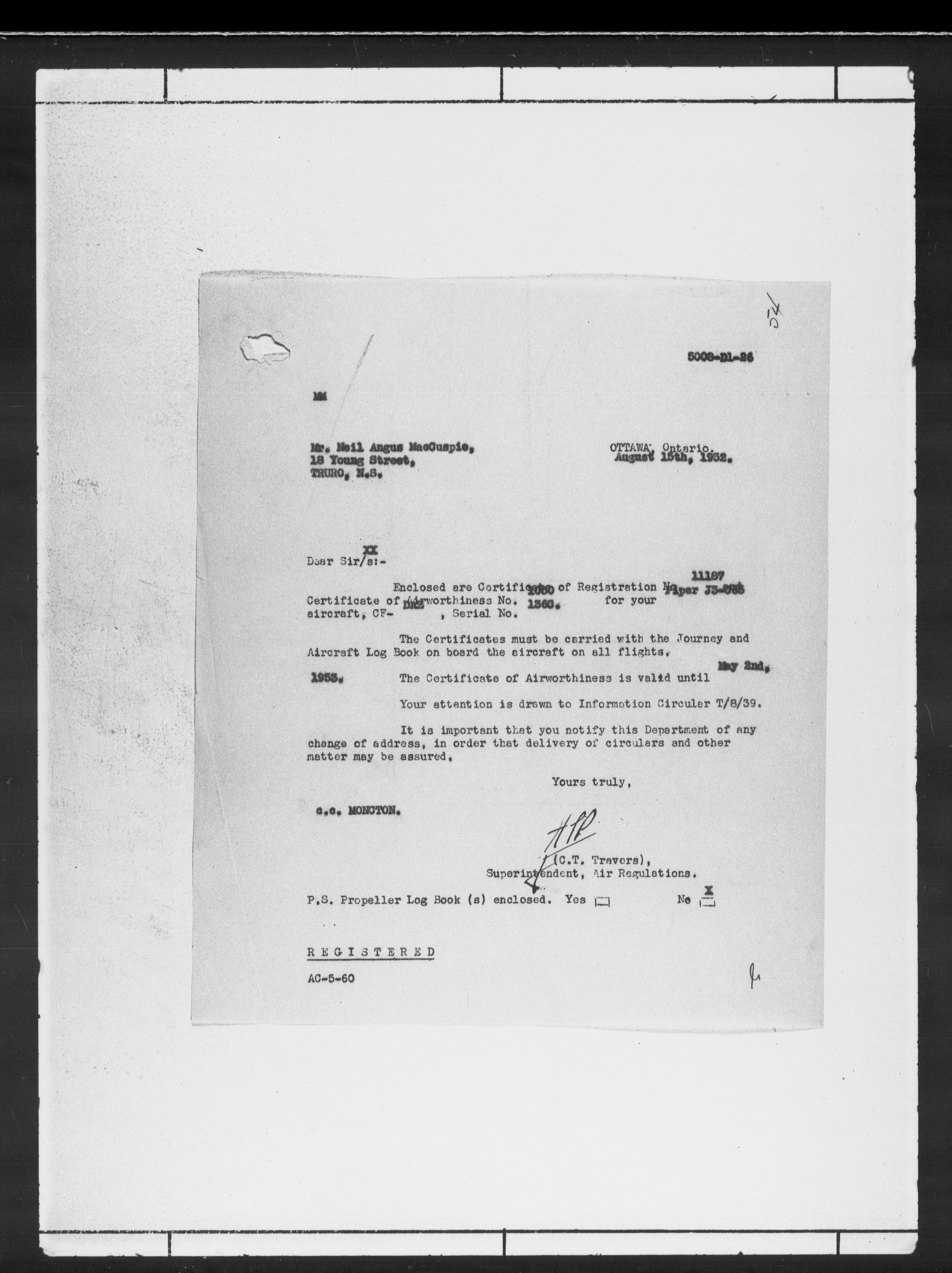 Department of Transport : Civil aircraft registration, inspection and operation files, block 5008, 1920-1986 - 7758