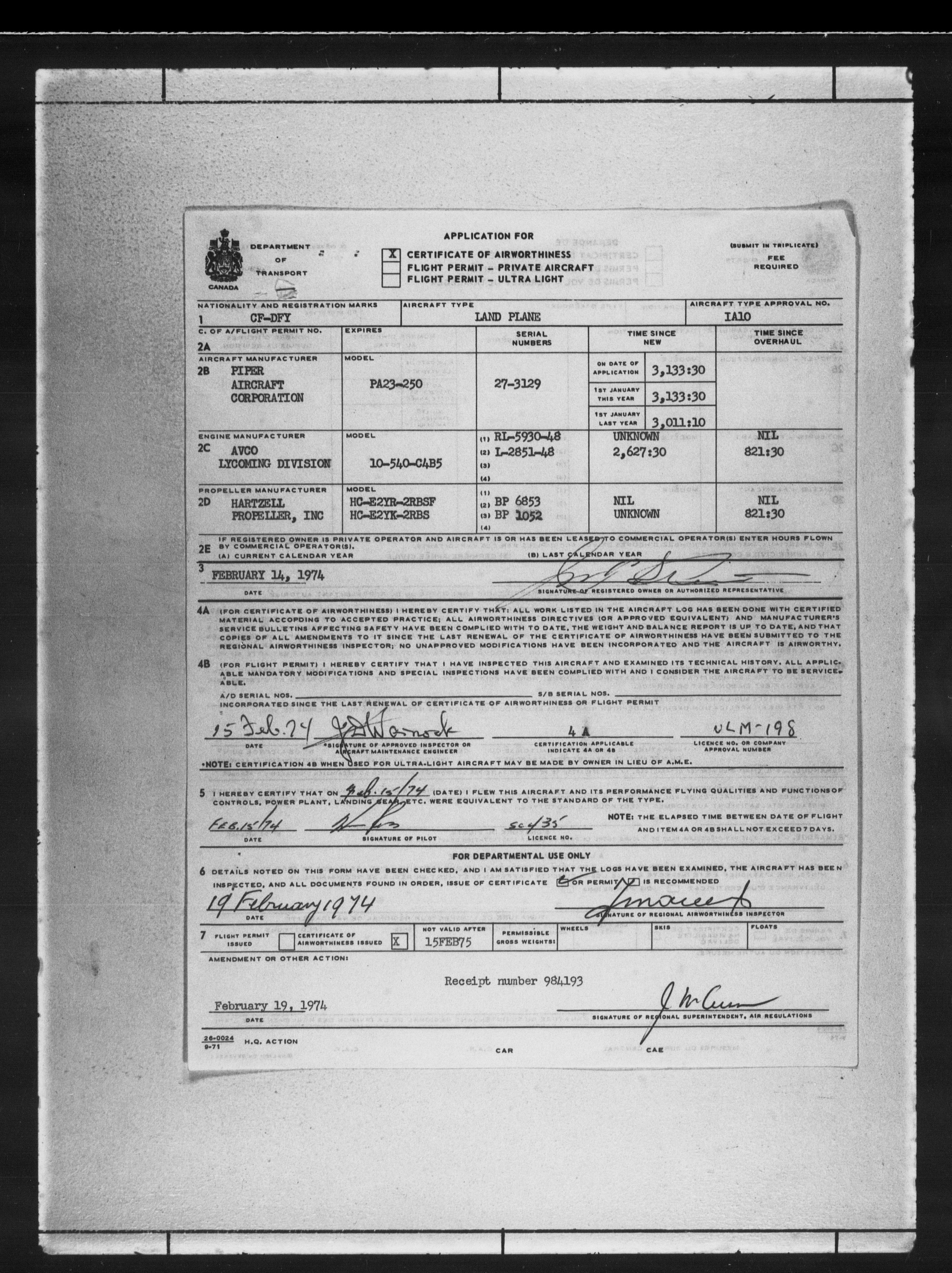 Department of Transport : Civil aircraft registration, inspection and operation files, block 5008, 1920-1986 - 7760