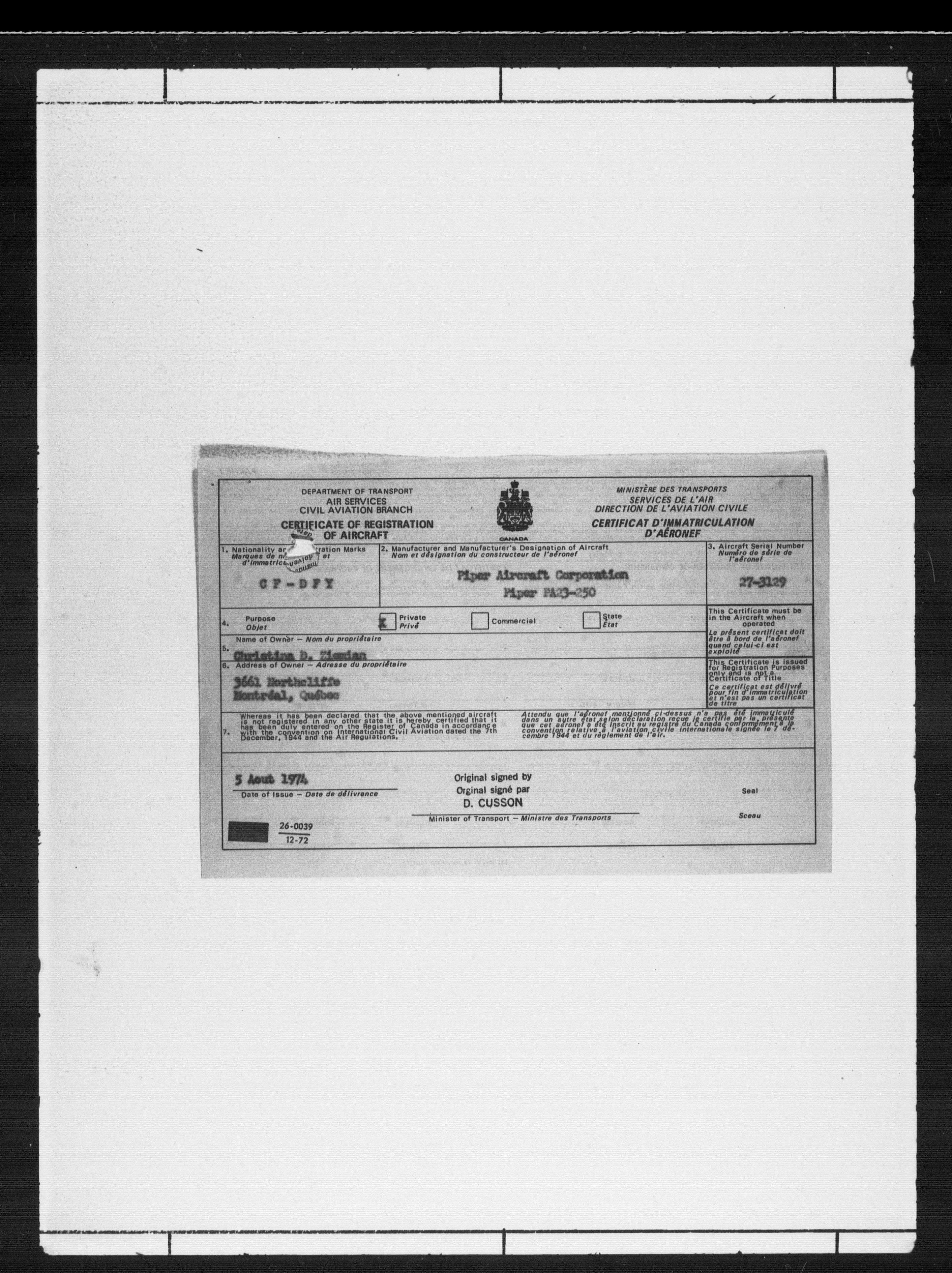 Department of Transport : Civil aircraft registration, inspection and operation files, block 5008, 1920-1986 - 7760
