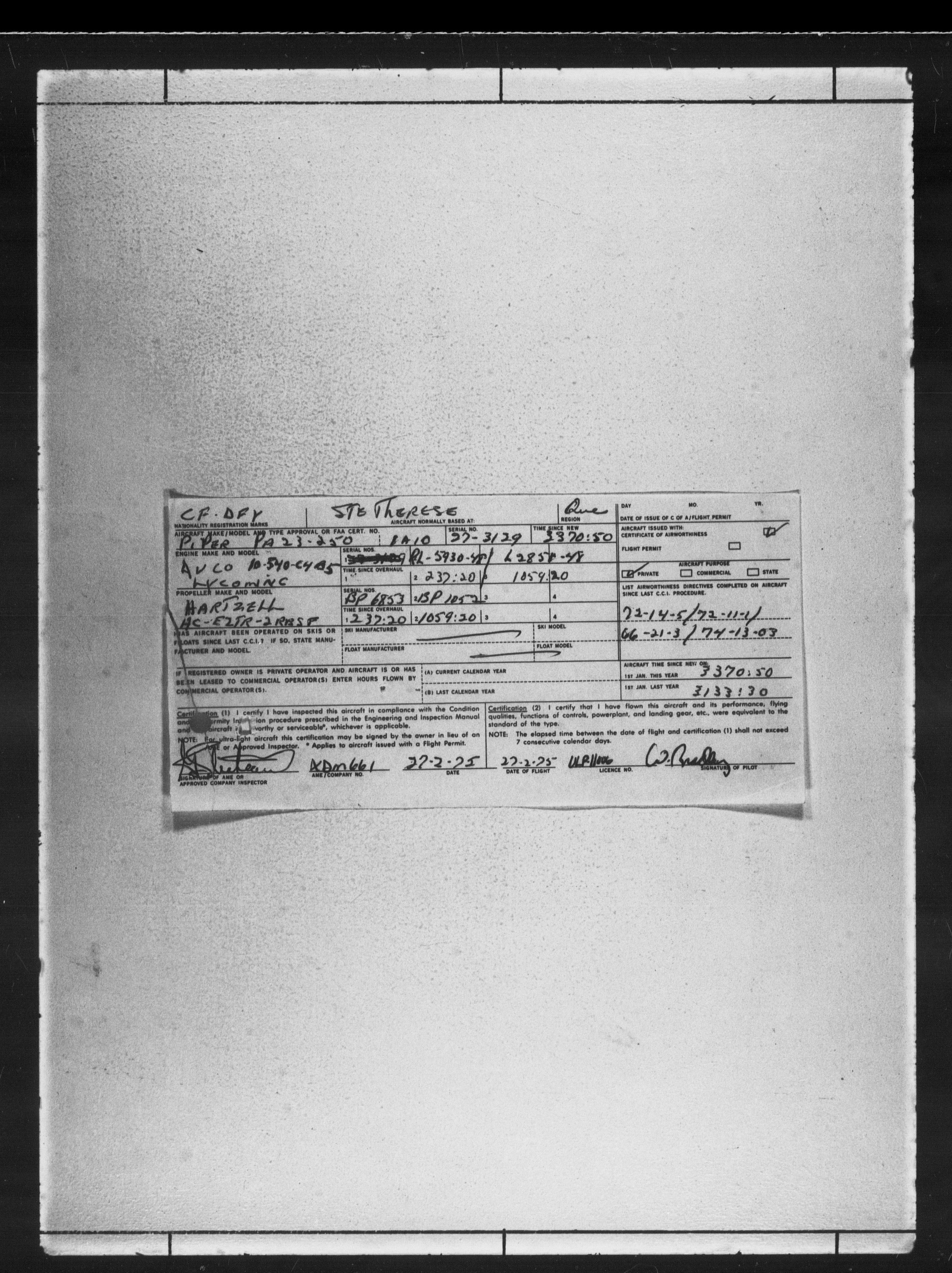 Department of Transport : Civil aircraft registration, inspection and operation files, block 5008, 1920-1986 - 7760