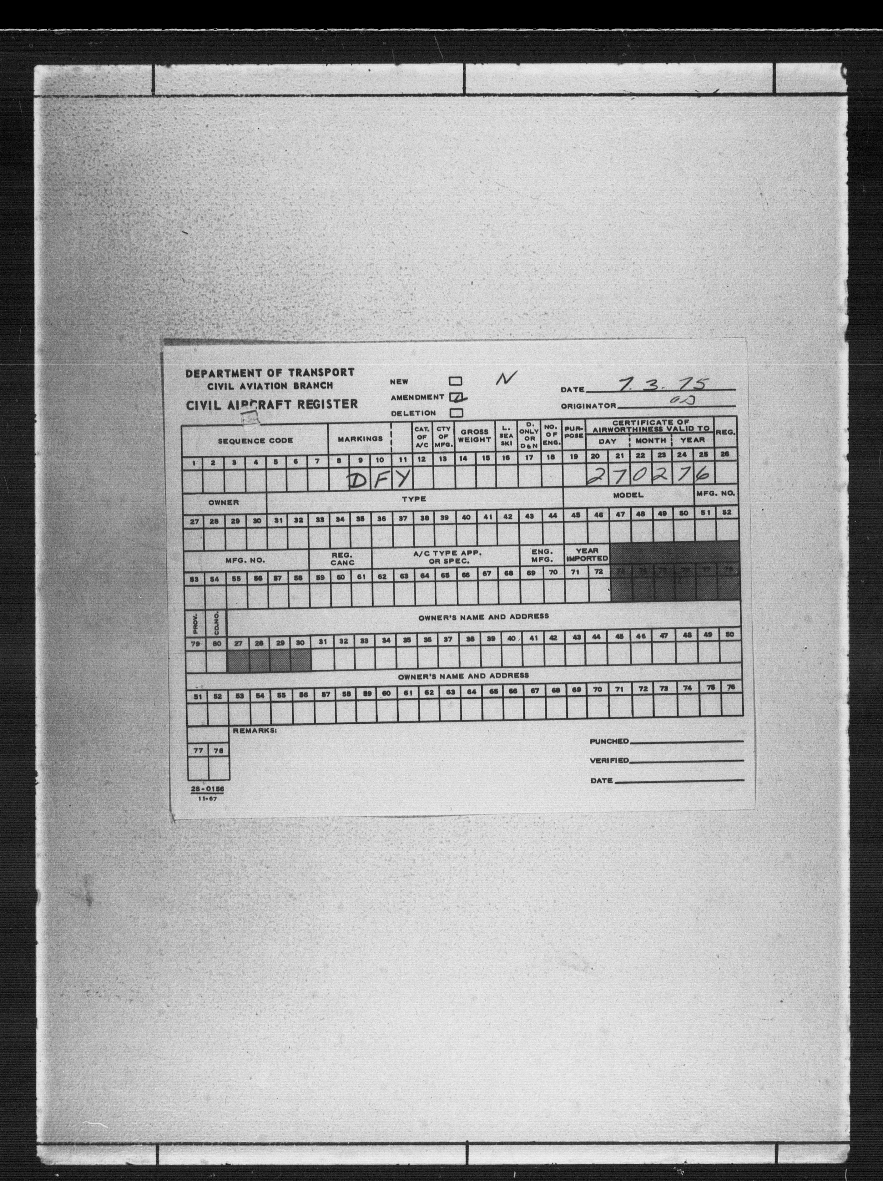 Department of Transport : Civil aircraft registration, inspection and operation files, block 5008, 1920-1986 - 7760