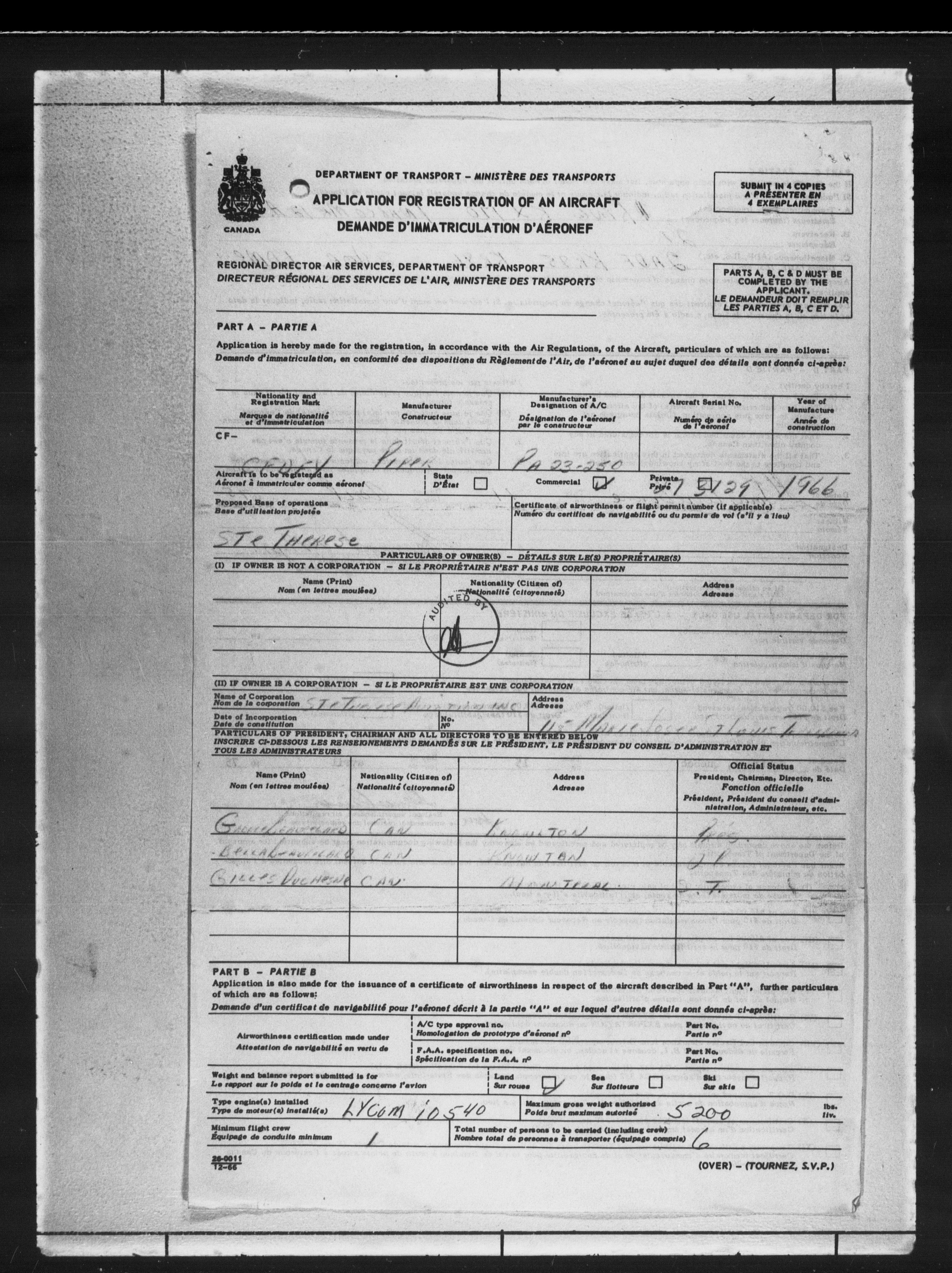 Department of Transport : Civil aircraft registration, inspection and operation files, block 5008, 1920-1986 - 7760