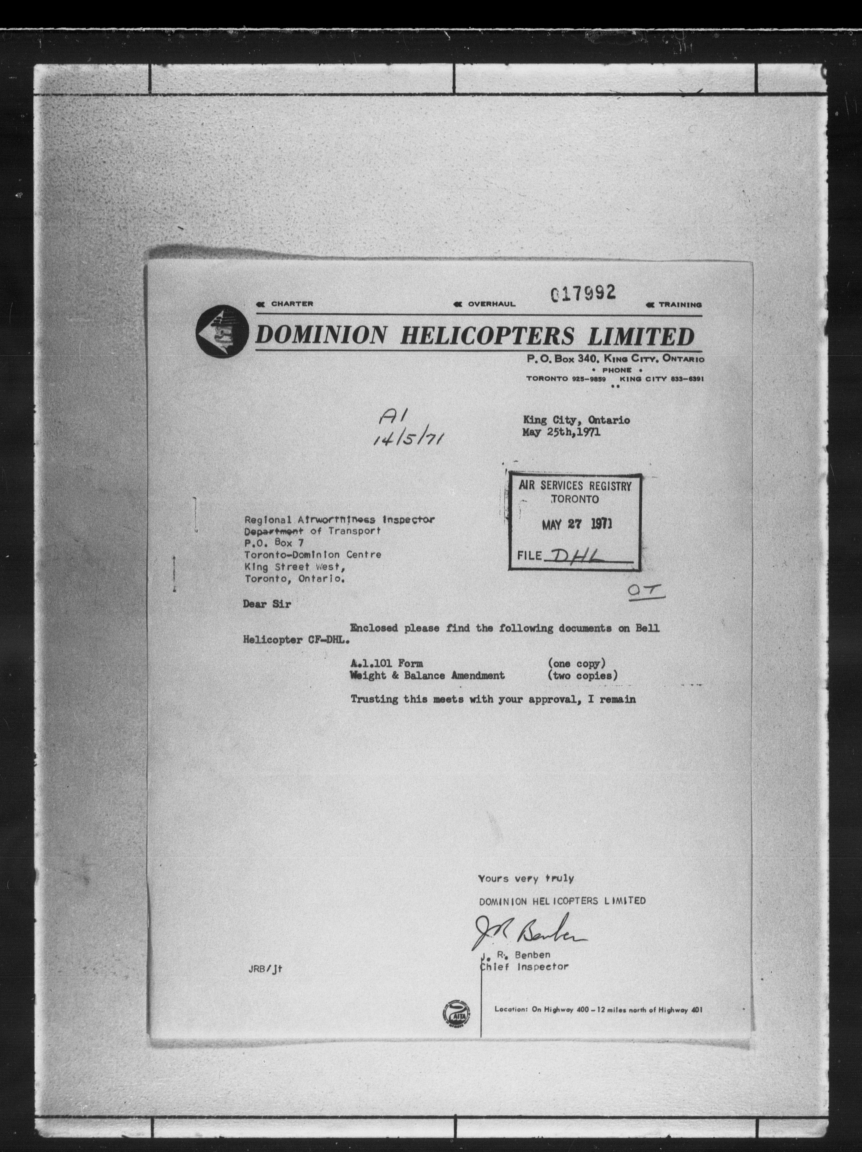 Department of Transport : Civil aircraft registration, inspection and operation files, block 5008, 1920-1986 - 7760