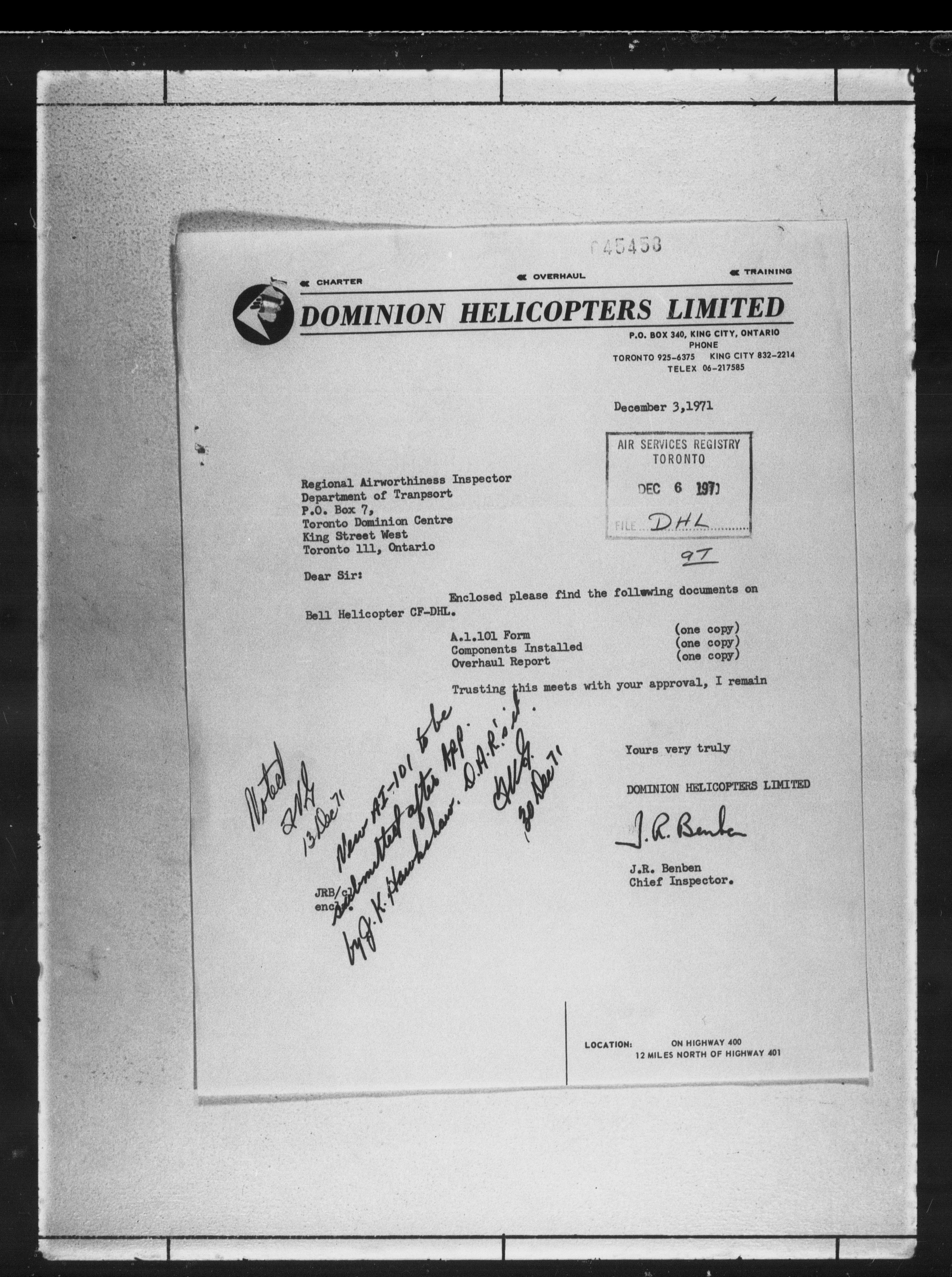 Department of Transport : Civil aircraft registration, inspection and operation files, block 5008, 1920-1986 - 7760