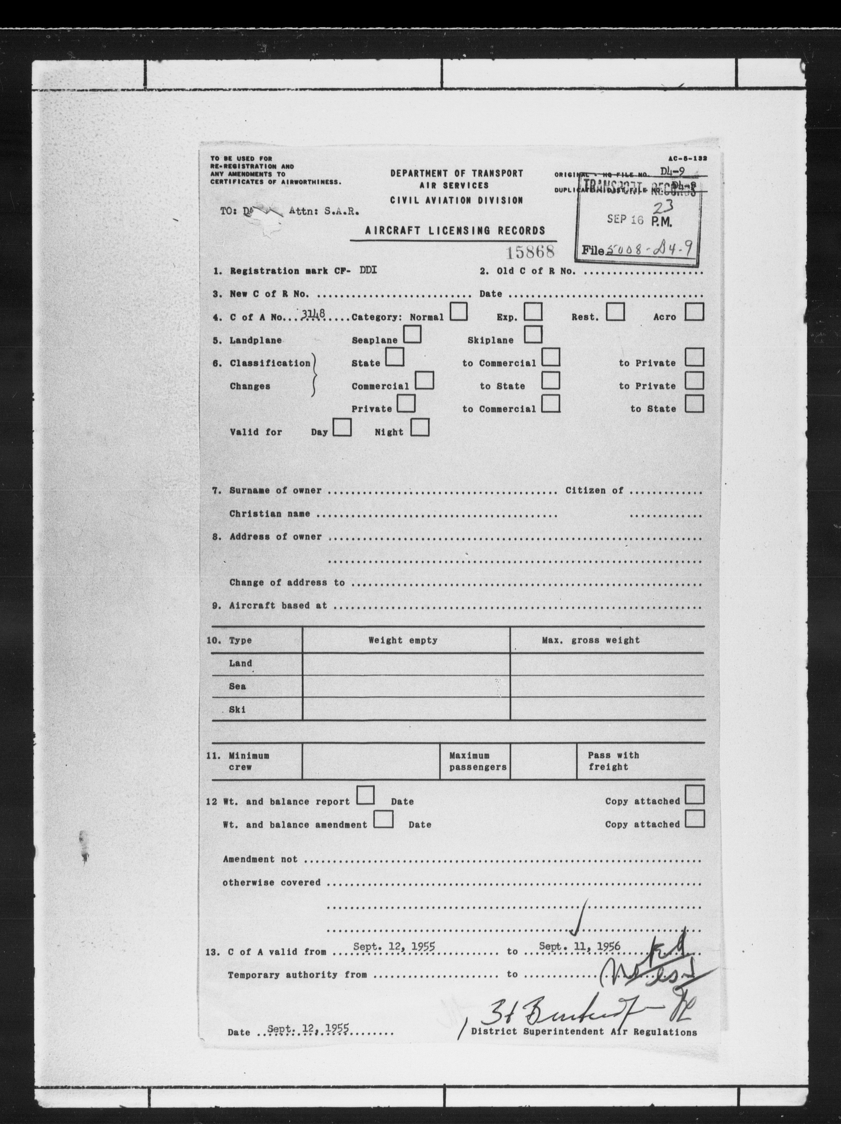 Department of Transport : Civil aircraft registration, inspection and operation files, block 5008, 1920-1986 - 7760