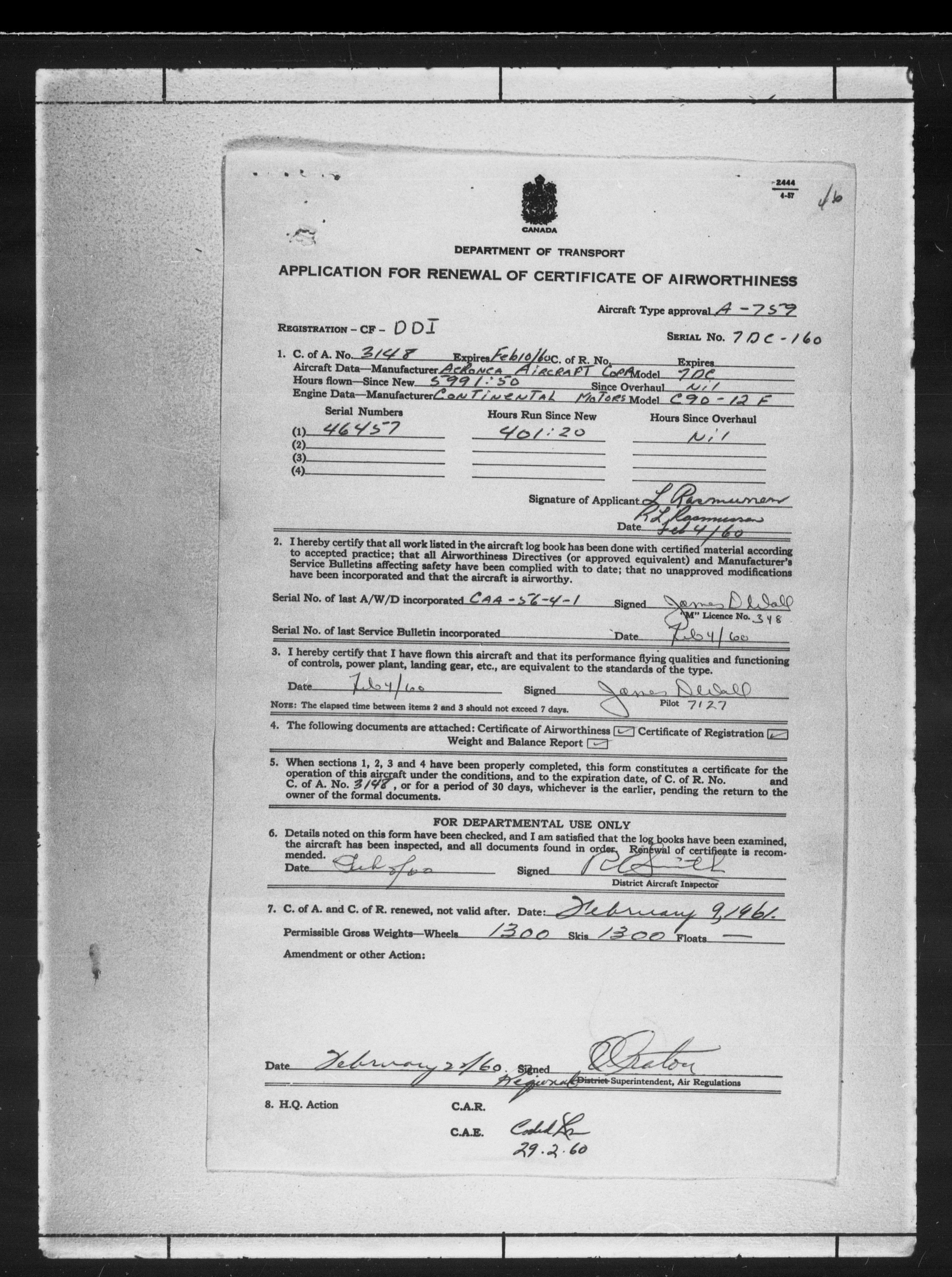 Department of Transport : Civil aircraft registration, inspection and operation files, block 5008, 1920-1986 - 7760