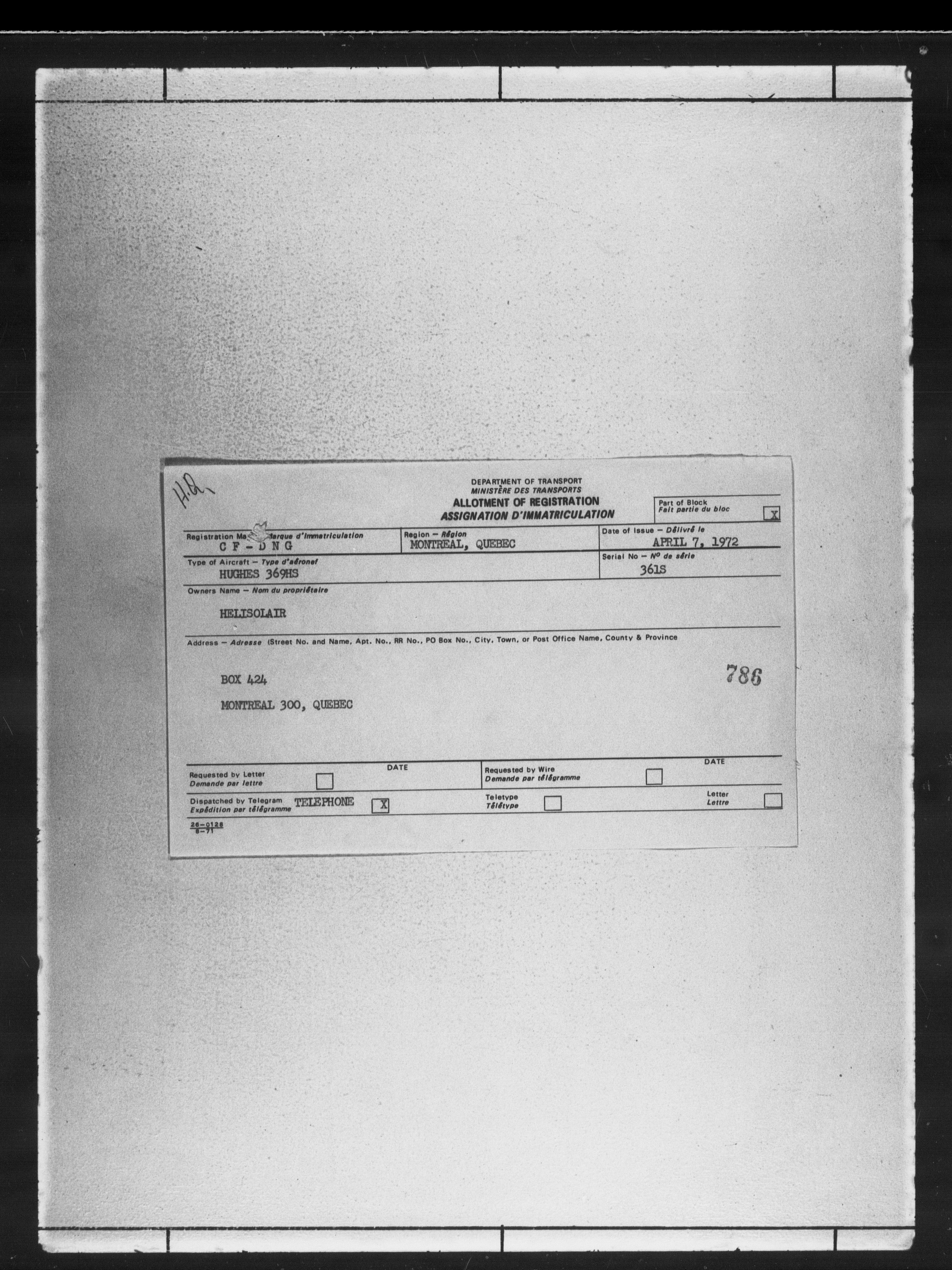 Department of Transport : Civil aircraft registration, inspection and operation files, block 5008, 1920-1986 - 7761